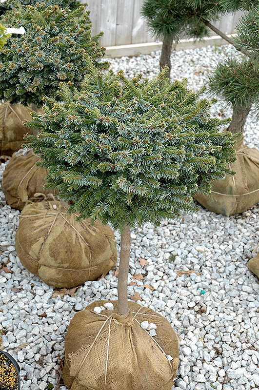 Hardiness Zone: 4a Description: A small tree form with great texture and color; showy, dark green needles are accented with a bluish cast and silvery undersides which seem to sparkle, reddish brown buds add to the effect; a beautiful and unusual accent choice Ornamental Features Pimoko Spruce (tree form) is primarily valued in the landscape or garden for its highly ornamental lollipop-like shape. It has attractive dark green foliage with silver undersides which emerges light green in spring. The needles are highly ornamental and remain dark green throughout the winter. The smooth brick red bark adds an interesting dimension to the landscape. Landscape Attributes Pimoko Spruce (tree form) is a dense evergreen dwarf tree, selected and trained to grow in a small tree-like form with the primary plant grafted high atop a standard. It lends an extremely fine and delicate texture to the landscape composition which can make it a great accent feature on this basis alone. This is a relatively low maintenance dwarf tree. When pruning is necessary, it is recommended to only trim back the new growth of the current season, other than to remove any dieback. It has no significant negative characteristics. Pimoko Spruce (tree form) is ideal for use as a garden accent or patio feature, and is recommended for the following landscape applications; Planting & Growing Pimoko Spruce (tree form) will grow to be about 4 feet tall at maturity, with a spread of 24 inches. It tends to be a little leggy, with a typical clearance of 2 feet from the ground. It grows at a slow rate, and under ideal conditions can be expected to live for 50 years or more. This dwarf tree should only be grown in full sunlight. It does best in average to evenly moist conditions, but will not tolerate standing water. It is not particular as to soil type or pH. It is quite intolerant of urban pollution, therefore inner city or urban streetside plantings are best avoided, and will benefit from being planted in a relatively sheltered location. This is a selected variety of a species not originally from North America.
