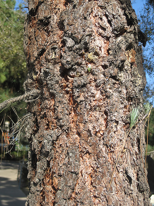 Hardiness Zone: 7b Other Names: Roxburgh Pine Description: This drought and heat tolerant variety can eventually grow quite large; open and airy branches displaying long, soft needles creates a graceful effect; an incredible addition to a large landscape in a hot, dry area Ornamental Features Chir Pine is primarily valued in the landscape for its ornamental upright and spreading habit of growth. It has rich green evergreen foliage which emerges chartreuse in spring. The large needles remain green throughout the winter. The furrowed dark brown bark is extremely showy and adds significant winter interest. Landscape Attributes Chir Pine is an open multi-stemmed evergreen tree with an upright spreading habit of growth. Its average texture blends into the landscape, but can be balanced by one or two finer or coarser trees or shrubs for an effective composition. This is a relatively low maintenance tree. When pruning is necessary, it is recommended to only trim back the new growth of the current season, other than to remove any dieback. It has no significant negative characteristics. Chir Pine is recommended for the following landscape applications; Planting & Growing Chir Pine will grow to be about 80 feet tall at maturity, with a spread of 50 feet. It has a high canopy of foliage that sits well above the ground, and should not be planted underneath power lines. As it matures, the lower branches of this tree can be strategically removed to create a high enough canopy to support unobstructed human traffic underneath. It grows at a medium rate, and under ideal conditions can be expected to live to a ripe old age of 100 years or more; think of this as a heritage tree for future generations! This tree should only be grown in full sunlight. It prefers dry to average moisture levels with very well-drained soil, and will often die in standing water. It is considered to be drought-tolerant, and thus makes an ideal choice for xeriscaping or the moisture-conserving landscape. It is not particular as to soil type or pH. It is somewhat tolerant of urban pollution. This species is not originally from North America.