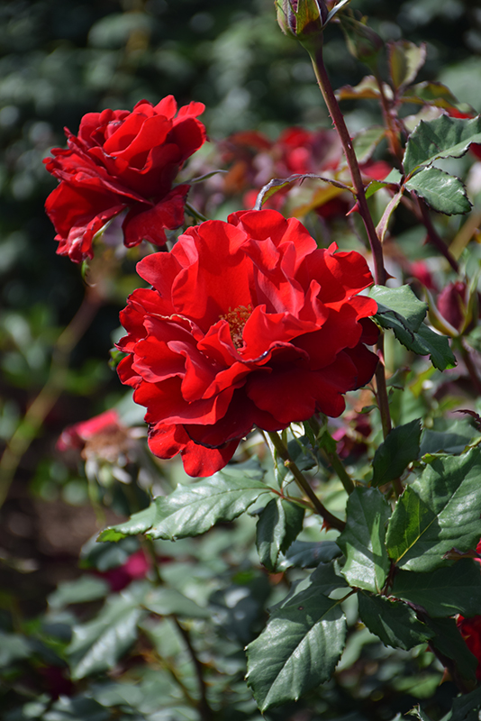 Hardiness Zone: 4b Group/Class: Hybrid Tea Rose Brand: Weeks Roses Description: A stunning rose with a mild tea fragrance, producing large, saturated, clear red blooms over matte gray-green foliage; excellent for cutting; ; blooms in flushes throughout the season Ornamental Features In The Mood™ Rose features showy lightly-scented double red flowers at the ends of the branches from late spring to mid fall. The flowers are excellent for cutting. It has grayish green deciduous foliage. The oval compound leaves do not develop any appreciable fall color. Landscape Attributes In The Mood™ Rose is a multi-stemmed deciduous shrub with an upright spreading habit of growth. Its average texture blends into the landscape, but can be balanced by one or two finer or coarser trees or shrubs for an effective composition. This shrub will require occasional maintenance and upkeep, and is best pruned in late winter once the threat of extreme cold has passed. It is a good choice for attracting bees to your yard. Gardeners should be aware of the following characteristic(s) that may warrant special consideration; In The Mood™ Rose is recommended for the following landscape applications; Planting & Growing In The Mood™ Rose will grow to be about 4 feet tall at maturity, with a spread of 3 feet. It tends to fill out right to the ground and therefore doesn't necessarily require facer plants in front. It grows at a medium rate, and under ideal conditions can be expected to live for approximately 20 years. This shrub should only be grown in full sunlight. It does best in average to evenly moist conditions, but will not tolerate standing water. To help this plant achive its best flowering performance, periodically apply a flower-boosting fertilizer from early spring through into the active growing season. It is not particular as to soil type or pH. It is somewhat tolerant of urban pollution. This particular variety is an interspecific hybrid.
