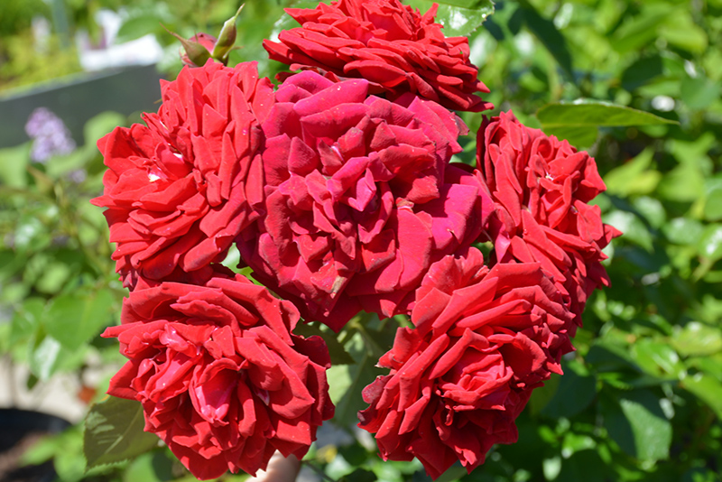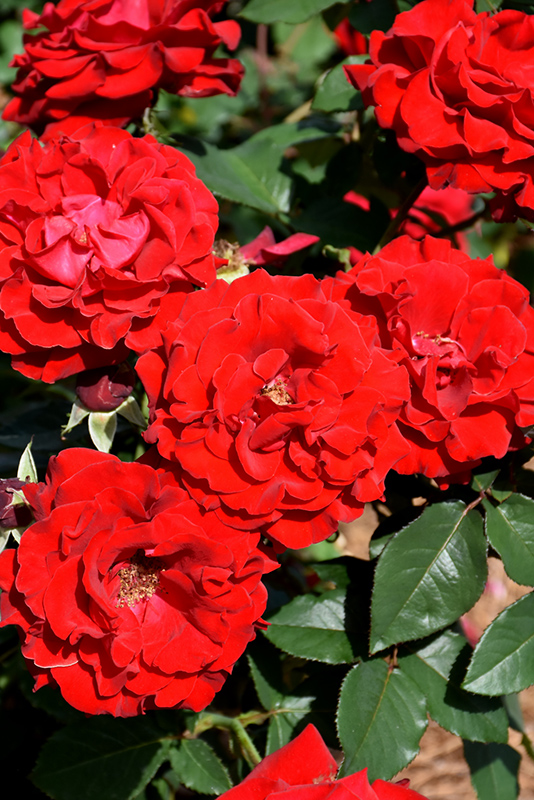 Hardiness Zone: 4b Group/Class: Grandiflora Rose Description: Clusters of velvety red, large ruffled blooms against the shiny, deep green foliage for a visually stunning display; strong stems are perfect for cutting; this vigorous, bushy plant has very good disease resistance Ornamental Features Oh My! Rose features showy clusters of lightly-scented double red flowers at the ends of the branches from early summer to mid fall. The flowers are excellent for cutting. It has dark green deciduous foliage. The glossy oval compound leaves do not develop any appreciable fall color. Landscape Attributes Oh My! Rose is a multi-stemmed deciduous shrub with an upright spreading habit of growth. Its average texture blends into the landscape, but can be balanced by one or two finer or coarser trees or shrubs for an effective composition. This shrub will require occasional maintenance and upkeep, and is best pruned in late winter once the threat of extreme cold has passed. It is a good choice for attracting bees to your yard. Gardeners should be aware of the following characteristic(s) that may warrant special consideration; Oh My! Rose is recommended for the following landscape applications; Planting & Growing Oh My! Rose will grow to be about 4 feet tall at maturity, with a spread of 4 feet. It tends to fill out right to the ground and therefore doesn't necessarily require facer plants in front. It grows at a fast rate, and under ideal conditions can be expected to live for approximately 30 years. This shrub should only be grown in full sunlight. It does best in average to evenly moist conditions, but will not tolerate standing water. It is not particular as to soil type or pH. It is highly tolerant of urban pollution and will even thrive in inner city environments. This particular variety is an interspecific hybrid.