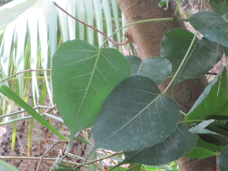 Hardiness Zone: 9b Other Names: Bodhi Tree, Sacred Fig, Peepul Fig Description: This variety grows quite large in warm climates, but can be maintained by pruning; site indoors in bright, indirect light; avoid overwatering; will produce aerial roots that decend to the ground; interesting bright green heart shaped foliage Ornamental Features Bo Tree has attractive green evergreen foliage on a tree with an upright spreading habit of growth. The heart-shaped leaves are highly ornamental and remain green throughout the winter. Landscape Attributes Bo Tree is a multi-stemmed evergreen tree with an upright spreading habit of growth. Its average texture blends into the landscape, but can be balanced by one or two finer or coarser trees or shrubs for an effective composition. This is a relatively low maintenance tree, and is best pruned in late winter once the threat of extreme cold has passed. It has no significant negative characteristics. Bo Tree is recommended for the following landscape applications; Planting & Growing Bo Tree will grow to be about 70 feet tall at maturity, with a spread of 70 feet. It has a low canopy with a typical clearance of 4 feet from the ground, and should not be planted underneath power lines. It grows at a fast rate, and under ideal conditions can be expected to live to a ripe old age of 100 years or more; think of this as a heritage tree for future generations! This tree does best in full sun to partial shade. It does best in average to evenly moist conditions, but will not tolerate standing water. It is not particular as to soil type or pH. It is highly tolerant of urban pollution and will even thrive in inner city environments. Consider applying a thick mulch around the root zone in winter to protect it in exposed locations or colder microclimates. This species is not originally from North America. It can be propagated by cuttings.