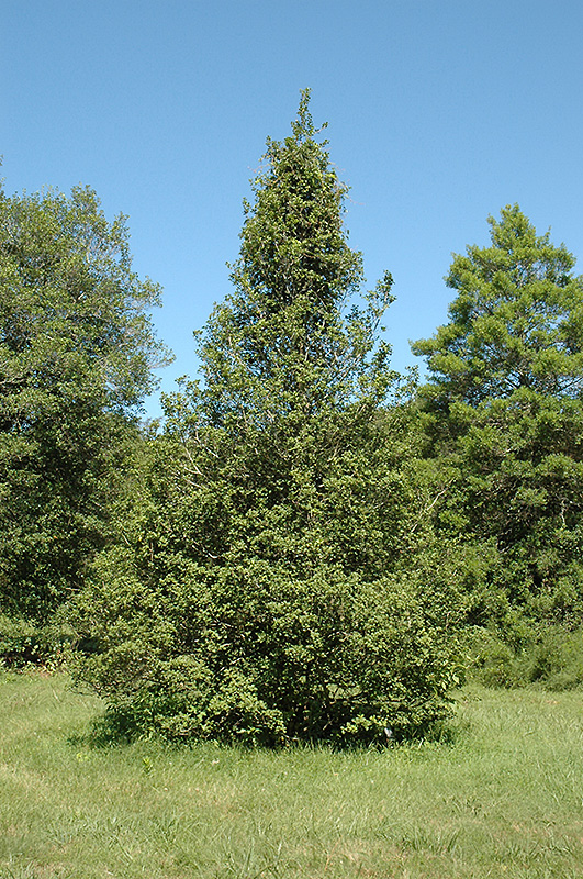 Hardiness Zone: 4b Description: This tall pyramidal evergreen has very spiny, olive green leaves and showy scarlet berries in winter; dense habit of growth; an excellent specimen plant for the home landscape, does best in evenly moist, acidic soils Ornamental Features Pincushion American Holly is primarily grown for its highly ornamental fruit. It features an abundance of magnificent scarlet berries from mid fall to late winter. It has olive green evergreen foliage which emerges light green in spring. The spiny oval leaves remain olive green throughout the winter. Landscape Attributes Pincushion American Holly is a dense evergreen tree with a strong central leader and a distinctive and refined pyramidal form. Its average texture blends into the landscape, but can be balanced by one or two finer or coarser trees or shrubs for an effective composition. This tree will require occasional maintenance and upkeep, and is best pruned in late winter once the threat of extreme cold has passed. It is a good choice for attracting birds to your yard. Gardeners should be aware of the following characteristic(s) that may warrant special consideration; Pincushion American Holly is recommended for the following landscape applications; Planting & Growing Pincushion American Holly will grow to be about 30 feet tall at maturity, with a spread of 15 feet. It has a low canopy with a typical clearance of 3 feet from the ground, and should not be planted underneath power lines. It grows at a slow rate, and under ideal conditions can be expected to live for 80 years or more. This is a female variety of the species which requires a male selection of the same species growing nearby in order to set fruit. This tree does best in full sun to partial shade. It requires an evenly moist well-drained soil for optimal growth, but will die in standing water. It is very fussy about its soil conditions and must have rich, acidic soils to ensure success, and is subject to chlorosis (yellowing) of the foliage in alkaline soils. It is somewhat tolerant of urban pollution. Consider applying a thick mulch around the root zone in winter to protect it in exposed locations or colder microclimates. This is a selection of a native North American species.