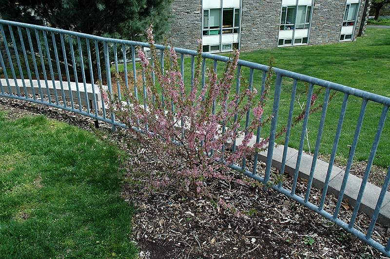 Hardiness Zone: 5b Other Names: Pacquemont Cherry, Afghan Bush Cherry Description: A dwarf ornamental shrub featuring showy pink flowers with deep red centers, followed by small tart cherries in summer; low growing and wide spreading; very adaptable Ornamental Features Dwarf Bush Cherry is covered in stunning fragrant shell pink flowers with red eyes along the branches in early spring before the leaves. It has green deciduous foliage. The pointy leaves turn an outstanding yellow in the fall. The fruits are showy plum purple drupes displayed in mid summer. The fruit can be messy if allowed to drop on the lawn or walkways, and may require occasional clean-up. Landscape Attributes Dwarf Bush Cherry is a multi-stemmed deciduous shrub with an upright spreading habit of growth. Its relatively fine texture sets it apart from other landscape plants with less refined foliage. This is a relatively low maintenance shrub, and is best pruned in late winter once the threat of extreme cold has passed. It is a good choice for attracting birds to your yard. It has no significant negative characteristics. Dwarf Bush Cherry is recommended for the following landscape applications; Planting & Growing Dwarf Bush Cherry will grow to be about 5 feet tall at maturity, with a spread of 4 feet. It tends to fill out right to the ground and therefore doesn't necessarily require facer plants in front, and is suitable for planting under power lines. It grows at a medium rate, and under ideal conditions can be expected to live for approximately 20 years. This is a self-pollinating variety, so it doesn't require a second plant nearby to set fruit. This shrub should only be grown in full sunlight. It does best in average to evenly moist conditions, but will not tolerate standing water. It is not particular as to soil type or pH. It is highly tolerant of urban pollution and will even thrive in inner city environments. This species is not originally from North America.