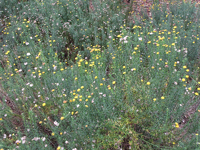 Hardiness Zone: 8b Other Names: Bitterbush, Golden Cowcud Description: A small bushy shrub with masses of yellow flower heads in spring; deadhead, and prune after flowering to maintain shape; drought tolerant once established; a fine container plant or addition to a rock garden Ornamental Features Golden Heads has masses of beautiful yellow button flowers at the ends of the branches from early spring to early summer, which are most effective when planted in groupings. The flowers are excellent for cutting. It has green deciduous foliage. The needle-like leaves do not develop any appreciable fall color. Landscape Attributes Golden Heads is a dense multi-stemmed deciduous shrub with a mounded form. It lends an extremely fine and delicate texture to the landscape composition which should be used to full effect. This is a relatively low maintenance shrub, and should only be pruned after flowering to avoid removing any of the current season's flowers. It is a good choice for attracting bees and butterflies to your yard. It has no significant negative characteristics. Golden Heads is recommended for the following landscape applications; Planting & Growing Golden Heads will grow to be about 24 inches tall at maturity, with a spread of 24 inches. It tends to fill out right to the ground and therefore doesn't necessarily require facer plants in front. It grows at a medium rate, and under ideal conditions can be expected to live for approximately 10 years. This shrub should only be grown in full sunlight. It is very adaptable to both dry and moist growing conditions, but will not tolerate any standing water. It is not particular as to soil pH, but grows best in sandy soils, and is able to handle environmental salt. It is somewhat tolerant of urban pollution. Consider applying a thick mulch around the root zone over the growing season to conserve soil moisture. This species is not originally from North America. Golden Heads makes a fine choice for the outdoor landscape, but it is also well-suited for use in outdoor pots and containers. It can be used either as 'filler' or as a 'thriller' in the 'spiller-thriller-filler' container combination, depending on the height and form of the other plants used in the container planting. It is even sizeable enough that it can be grown alone in a suitable container. Note that when grown in a container, it may not perform exactly as indicated on the tag - this is to be expected. Also note that when growing plants in outdoor containers and baskets, they may require more frequent waterings than they would in the yard or garden.