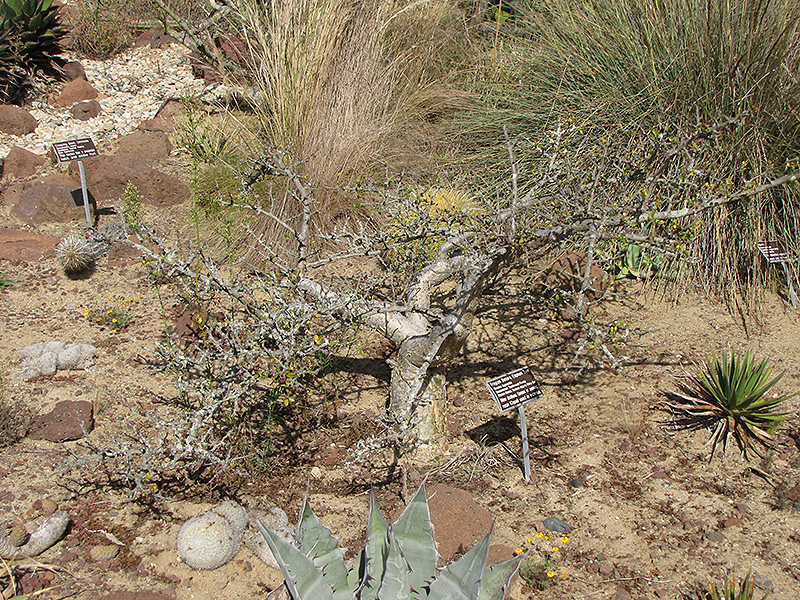 Hardiness Zone: 9b Other Names: Elephant Tree, Torchwood Description: An interesting bonsai-like shrub with a short, thick trunk, and peeling white bark; dark green foliage has a citrus like odor when crushed; low water needs; drought deciduous; great for rock gardens or containers Ornamental Features Fragrant Bursera has attractive dark green deciduous foliage on a plant with an upright spreading habit of growth. The fragrant oval compound leaves are highly ornamental but do not develop any appreciable fall color. The fruits are showy green drupes displayed in late summer. The peeling white bark is extremely showy and adds significant winter interest. Landscape Attributes Fragrant Bursera is a multi-stemmed deciduous shrub with an upright spreading habit of growth. Its average texture blends into the landscape, but can be balanced by one or two finer or coarser trees or shrubs for an effective composition. This is a relatively low maintenance shrub, and may require the occasional pruning to look its best. It has no significant negative characteristics. Fragrant Bursera is recommended for the following landscape applications; Planting & Growing Fragrant Bursera will grow to be about 6 feet tall at maturity, with a spread of 5 feet. It has a low canopy with a typical clearance of 1 foot from the ground, and is suitable for planting under power lines. It grows at a slow rate, and under ideal conditions can be expected to live for approximately 30 years. This shrub should only be grown in full sunlight. It prefers dry to average moisture levels with very well-drained soil, and will often die in standing water. It is considered to be drought-tolerant, and thus makes an ideal choice for xeriscaping or the moisture-conserving landscape. It is not particular as to soil type or pH. It is somewhat tolerant of urban pollution. This species is native to parts of North America. Fragrant Bursera makes a fine choice for the outdoor landscape, but it is also well-suited for use in outdoor pots and containers. With its upright habit of growth, it is best suited for use as a 'thriller' in the 'spiller-thriller-filler' container combination; plant it near the center of the pot, surrounded by smaller plants and those that spill over the edges. It is even sizeable enough that it can be grown alone in a suitable container. Note that when grown in a container, it may not perform exactly as indicated on the tag - this is to be expected. Also note that when growing plants in outdoor containers and baskets, they may require more frequent waterings than they would in the yard or garden.