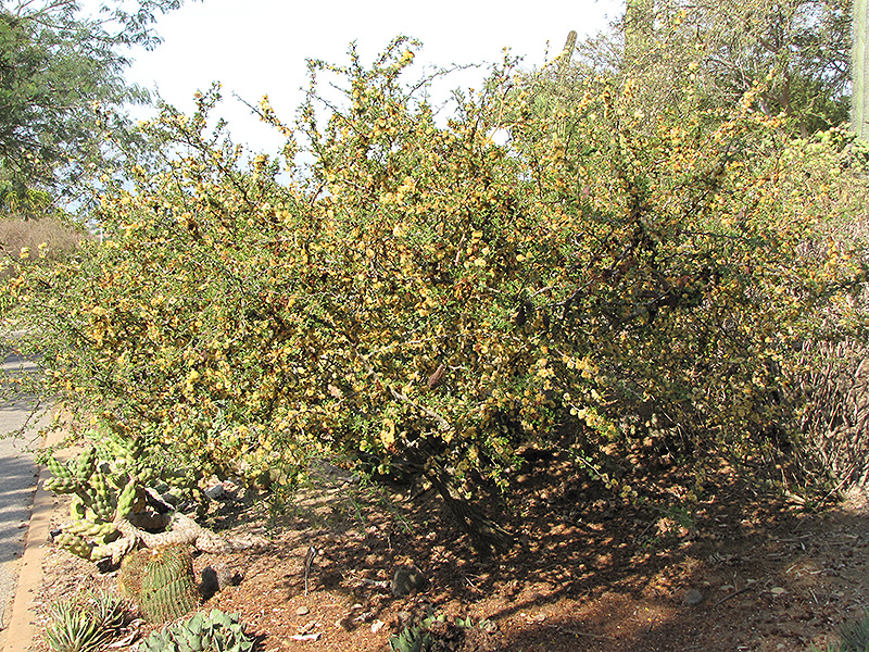 Hardiness Zone: 8b Other Names: Palo Fierro, syn. Ebenopsis confinis Description: This highly decorative tree is remarkably drought tolerant and very slow growing; leaves are arranged along thorny branches; sweetly fragrant flower clusters appear from late spring until fall, followed by large seed pods that persist through winter Ornamental Features Ejoton features showy spikes of fragrant creamy white flowers with buttery yellow overtones at the ends of the branches from early to mid summer. It has dark green evergreen foliage. The small glossy oval compound leaves remain dark green throughout the winter. However, the fruit can be messy in the landscape and may require occasional clean-up. The rough gray bark adds an interesting dimension to the landscape. Landscape Attributes Ejoton is a multi-stemmed evergreen tree with an upright spreading habit of growth. Its average texture blends into the landscape, but can be balanced by one or two finer or coarser trees or shrubs for an effective composition. This tree will require occasional maintenance and upkeep, and should only be pruned after flowering to avoid removing any of the current season's flowers. Gardeners should be aware of the following characteristic(s) that may warrant special consideration; Ejoton is recommended for the following landscape applications; Planting & Growing Ejoton will grow to be about 20 feet tall at maturity, with a spread of 20 feet. It has a low canopy with a typical clearance of 2 feet from the ground, and is suitable for planting under power lines. It grows at a slow rate, and under ideal conditions can be expected to live for 50 years or more. This tree does best in full sun to partial shade. It is very adaptable to both dry and moist locations, and should do just fine under average home landscape conditions. It is considered to be drought-tolerant, and thus makes an ideal choice for xeriscaping or the moisture-conserving landscape. It is not particular as to soil type or pH. It is somewhat tolerant of urban pollution. Consider applying a thick mulch around the root zone in winter to protect it in exposed locations or colder microclimates. This species is native to parts of North America. Ejoton is a fine choice for the yard, but it is also a good selection for planting in outdoor pots and containers. Its large size and upright habit of growth lend it for use as a solitary accent, or in a composition surrounded by smaller plants around the base and those that spill over the edges. It is even sizeable enough that it can be grown alone in a suitable container. Note that when grown in a container, it may not perform exactly as indicated on the tag - this is to be expected. Also note that when growing plants in outdoor containers and baskets, they may require more frequent waterings than they would in the yard or garden.