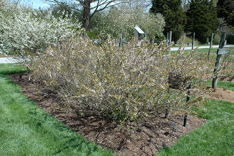 Hardiness Zone: 4a Other Names: Dwarf Bush Cherry Description: A dwarf ornamental shrub featuring showy white flowers with deep pink centers, followed by tart cherries in summer, good for jams; a great specimen or hedge plant; very adaptable and hardy Edible Qualities Joy Bush Cherry is a small shrub that is typically grown for its edible qualities. It produces red round fruit (technically 'drupes') with red flesh which are usually ready for picking in late summer. Note that the fruits have hard inedible pits inside which must be removed before eating or processing. The fruits have a tart taste and a firm texture. The fruit are most often used in the following ways: Features & Attributes Joy Bush Cherry is covered in stunning fragrant white flowers with hot pink eyes along the branches in early spring before the leaves. It has green deciduous foliage which emerges brick red in spring. The pointy leaves turn an outstanding yellow in the fall. The fruits are showy red drupes carried in abundance from mid to late summer. This is a multi-stemmed deciduous shrub with an upright spreading habit of growth. Its relatively fine texture sets it apart from other landscape plants with less refined foliage. This is a relatively low maintenance plant, and is best pruned in late winter once the threat of extreme cold has passed. It is a good choice for attracting birds to your yard. It has no significant negative characteristics. Aside from its primary use as an edible, Joy Bush Cherry is sutiable for the following landscape applications; Planting & Growing Joy Bush Cherry will grow to be about 4 feet tall at maturity, with a spread of 4 feet. It tends to fill out right to the ground and therefore doesn't necessarily require facer plants in front. It grows at a medium rate, and under ideal conditions can be expected to live for approximately 20 years. This variety requires a different selection of the same species growing nearby in order to set fruit. This shrub is typically grown in a designated area of the yard because of its mature size and spread. It should only be grown in full sunlight. It does best in average to evenly moist conditions, but will not tolerate standing water. It is not particular as to soil type or pH. It is highly tolerant of urban pollution and will even thrive in inner city environments. This particular variety is an interspecific hybrid. Joy Bush Cherry is a good choice for the edible garden, but it is also well-suited for use in outdoor pots and containers. With its upright habit of growth, it is best suited for use as a 'thriller' in the 'spiller-thriller-filler' container combination; plant it near the center of the pot, surrounded by smaller plants and those that spill over the edges. It is even sizeable enough that it can be grown alone in a suitable container. Note that when grown in a container, it may not perform exactly as indicated on the tag - this is to be expected. Also note that when growing plants in outdoor containers and baskets, they may require more frequent waterings than they would in the yard or garden.