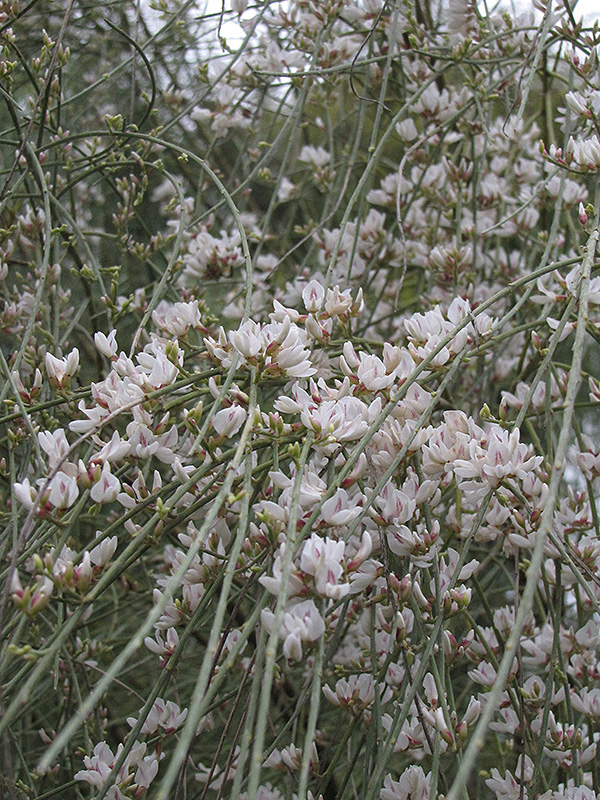Hardiness Zone: 9a Other Names: syn. Genista monosperma, Spartium monosperma Description: A large garden shrub with a fine weeping habit; covered in white flowers from late winter until mid-spring, followed by tan pods; thrives well in dry, poor soils; leafless most of the year; an interesting border or container plant Ornamental Features Bridal Veil Broom features showy fragrant white pea-like flowers with purple calyces along the branches from late winter to mid spring before the leaves. It has bluish-green deciduous foliage which emerges grayish green in spring. The narrow leaves do not develop any appreciable fall color. The fruits are showy tan pods displayed in mid summer. The smooth gray bark is extremely showy and adds significant winter interest. Landscape Attributes Bridal Veil Broom is a multi-stemmed deciduous shrub with a rounded form and gracefully weeping branches. Its average texture blends into the landscape, but can be balanced by one or two finer or coarser trees or shrubs for an effective composition. This shrub will require occasional maintenance and upkeep, and should only be pruned after flowering to avoid removing any of the current season's flowers. It is a good choice for attracting bees and butterflies to your yard. Gardeners should be aware of the following characteristic(s) that may warrant special consideration; Bridal Veil Broom is recommended for the following landscape applications; Planting & Growing Bridal Veil Broom will grow to be about 10 feet tall at maturity, with a spread of 6 feet. It has a low canopy, and is suitable for planting under power lines. It grows at a fast rate, and under ideal conditions can be expected to live for 40 years or more. As this plant tends to go dormant in summer, it is best interplanted with late-season bloomers to hide the dying foliage. This shrub does best in full sun to partial shade. It is very adaptable to both dry and moist growing conditions, but will not tolerate any standing water. It is considered to be drought-tolerant, and thus makes an ideal choice for xeriscaping or the moisture-conserving landscape. It is not particular as to soil pH, but grows best in poor soils, and is able to handle environmental salt. It is highly tolerant of urban pollution and will even thrive in inner city environments. This species is not originally from North America. Bridal Veil Broom makes a fine choice for the outdoor landscape, but it is also well-suited for use in outdoor pots and containers. Because of its height, it is often used as a 'thriller' in the 'spiller-thriller-filler' container combination; plant it near the center of the pot, surrounded by smaller plants and those that spill over the edges. It is even sizeable enough that it can be grown alone in a suitable container. Note that when grown in a container, it may not perform exactly as indicated on the tag - this is to be expected. Also note that when growing plants in outdoor containers and baskets, they may require more frequent waterings than they would in the yard or garden.