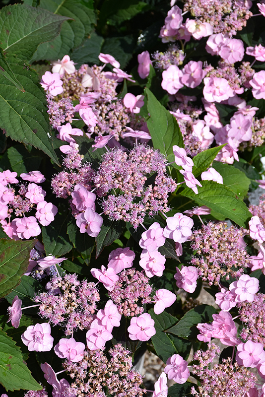 Hardiness Zone: 4b Other Names: Mountain Hydrangea Brand: Proven Winners Description: An attractive, re-blooming shrub featuring showy white to light-pink lacecap flowers with creamy centers, that turn more blue in acid soil; re-blooms on new and old wood; deep green leaves turn burgundy in fall Ornamental Features Tiny Tuff Stuff™ Hydrangea features bold pink lacecap flowers with white overtones and blue streaks at the ends of the branches from early to late summer. The flowers are excellent for cutting. It has attractive dark green deciduous foliage. The serrated pointy leaves are highly ornamental and turn an outstanding burgundy in the fall. Landscape Attributes Tiny Tuff Stuff™ Hydrangea is a multi-stemmed deciduous shrub with an upright spreading habit of growth. Its strikingly bold and coarse texture can be very effective in a balanced landscape composition. This is a relatively low maintenance shrub, and should only be pruned after flowering to avoid removing any of the current season's flowers. It has no significant negative characteristics. Tiny Tuff Stuff™ Hydrangea is recommended for the following landscape applications; Planting & Growing Tiny Tuff Stuff™ Hydrangea will grow to be about 24 inches tall at maturity, with a spread of 24 inches. It has a low canopy. It grows at a medium rate, and under ideal conditions can be expected to live for approximately 30 years. This shrub performs well in both full sun and full shade. However, you may want to keep it away from hot, dry locations that receive direct afternoon sun or which get reflected sunlight, such as against the south side of a white wall. It prefers to grow in average to moist conditions, and shouldn't be allowed to dry out. It is not particular as to soil type, but has a definite preference for acidic soils. It is somewhat tolerant of urban pollution, and will benefit from being planted in a relatively sheltered location. Consider applying a thick mulch around the root zone in winter to protect it in exposed locations or colder microclimates. This is a selected variety of a species not originally from North America. Tiny Tuff Stuff™ Hydrangea makes a fine choice for the outdoor landscape, but it is also well-suited for use in outdoor pots and containers. With its upright habit of growth, it is best suited for use as a 'thriller' in the 'spiller-thriller-filler' container combination; plant it near the center of the pot, surrounded by smaller plants and those that spill over the edges. It is even sizeable enough that it can be grown alone in a suitable container. Note that when grown in a container, it may not perform exactly as indicated on the tag - this is to be expected. Also note that when growing plants in outdoor containers and baskets, they may require more frequent waterings than they would in the yard or garden.