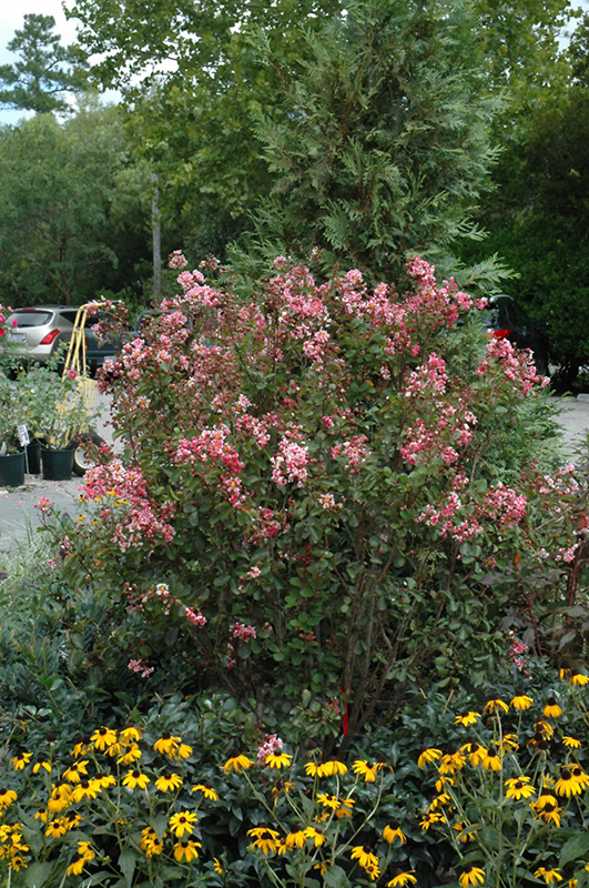 Hardiness Zone: 6a Other Names: Crape Myrtle, Crepe Myrtle Description: This attractive dwarf ornamental shrub is covered in rich red-pink blooms with white edging on the petals; red, orange, and gold fall foliage; a captivating focal point for the garden or border; roots hardy to zone 6, cut back in fall in colder climates Ornamental Features Cinnamon Ruffle Crapemyrtle is smothered in stunning panicles of red frilly flowers with pink overtones and white edges at the ends of the branches from early summer to early fall. It has attractive dark green deciduous foliage which emerges coppery-bronze in spring. The oval leaves are highly ornamental and turn harvest gold in fall. Landscape Attributes Cinnamon Ruffle Crapemyrtle is a dense multi-stemmed deciduous shrub with an upright spreading habit of growth. Its relatively fine texture sets it apart from other landscape plants with less refined foliage. This is a relatively low maintenance shrub, and is best pruned in late winter once the threat of extreme cold has passed. It has no significant negative characteristics. Cinnamon Ruffle Crapemyrtle is recommended for the following landscape applications; Planting & Growing Cinnamon Ruffle Crapemyrtle will grow to be about 10 feet tall at maturity, with a spread of 6 feet. It has a low canopy with a typical clearance of 2 feet from the ground, and is suitable for planting under power lines. It grows at a fast rate, and under ideal conditions can be expected to live for 50 years or more. This shrub does best in full sun to partial shade. It prefers to grow in average to moist conditions, and shouldn't be allowed to dry out. It is very fussy about its soil conditions and must have rich, acidic soils to ensure success, and is subject to chlorosis (yellowing) of the foliage in alkaline soils. It is highly tolerant of urban pollution and will even thrive in inner city environments. This is a selected variety of a species not originally from North America.
