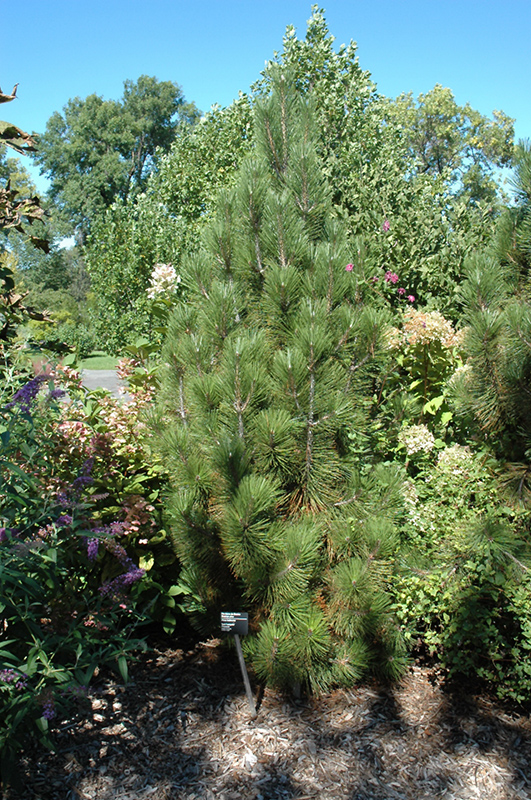 Hardiness Zone: 5a Other Names: Pinus leucodermis, Serbian Pine Description: A very narrow upright variety, perfect for tight landscape spaces where a strong vertical accent is desired; nearly vertical branches with long, elegant needles that are also upswept; salt tolerant, a predictable narrow habit, and great disease resistance Ornamental Features Iseli Fastigiate Bosnian Pine is primarily valued in the landscape for its rigidly columnar form. It has emerald green evergreen foliage. The needles remain emerald green throughout the winter. The rough brown bark and silver branches add an interesting dimension to the landscape. Landscape Attributes Iseli Fastigiate Bosnian Pine is a dense multi-stemmed evergreen tree with a narrowly upright and columnar growth habit. Its relatively fine texture sets it apart from other landscape plants with less refined foliage. This is a relatively low maintenance tree. When pruning is necessary, it is recommended to only trim back the new growth of the current season, other than to remove any dieback. It has no significant negative characteristics. Iseli Fastigiate Bosnian Pine is recommended for the following landscape applications; Planting & Growing Iseli Fastigiate Bosnian Pine will grow to be about 20 feet tall at maturity, with a spread of 10 feet. It has a low canopy, and is suitable for planting under power lines. It grows at a slow rate, and under ideal conditions can be expected to live for 60 years or more. This tree should only be grown in full sunlight. It prefers dry to average moisture levels with very well-drained soil, and will often die in standing water. It is considered to be drought-tolerant, and thus makes an ideal choice for xeriscaping or the moisture-conserving landscape. It is not particular as to soil type, but has a definite preference for acidic soils, and is able to handle environmental salt. It is highly tolerant of urban pollution and will even thrive in inner city environments. This is a selected variety of a species not originally from North America.