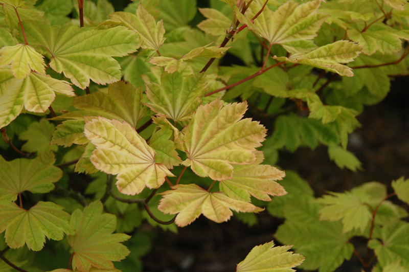 Hardiness Zone: 5a Description: A vigorous small ornamental shrubby tree with beautiful apricot-peach emerging foliage that turns chartreuse and lime green, finishing yellow in fall; best with some shelter, needs moist soil, water more if grown in full sun Ornamental Features Sunglow Vine Maple has attractive chartreuse-variegated lime green foliage which emerges peach in spring on a plant with an oval habit of growth. The lobed leaves are highly ornamental and turn an outstanding yellow in the fall. Landscape Attributes Sunglow Vine Maple is a multi-stemmed deciduous shrub with a shapely oval form. Its average texture blends into the landscape, but can be balanced by one or two finer or coarser trees or shrubs for an effective composition. This is a relatively low maintenance shrub, and should only be pruned in summer after the leaves have fully developed, as it may 'bleed' sap if pruned in late winter or early spring. It has no significant negative characteristics. Sunglow Vine Maple is recommended for the following landscape applications; Planting & Growing Sunglow Vine Maple will grow to be about 10 feet tall at maturity, with a spread of 10 feet. It has a low canopy with a typical clearance of 1 foot from the ground, and is suitable for planting under power lines. It grows at a slow rate, and under ideal conditions can be expected to live for 60 years or more. This shrub does best in full sun to partial shade. You may want to keep it away from hot, dry locations that receive direct afternoon sun or which get reflected sunlight, such as against the south side of a white wall. It requires an evenly moist well-drained soil for optimal growth, but will die in standing water. It is not particular as to soil pH, but grows best in rich soils. It is somewhat tolerant of urban pollution, and will benefit from being planted in a relatively sheltered location. Consider applying a thick mulch around the root zone over the growing season to conserve soil moisture. This is a selection of a native North American species.