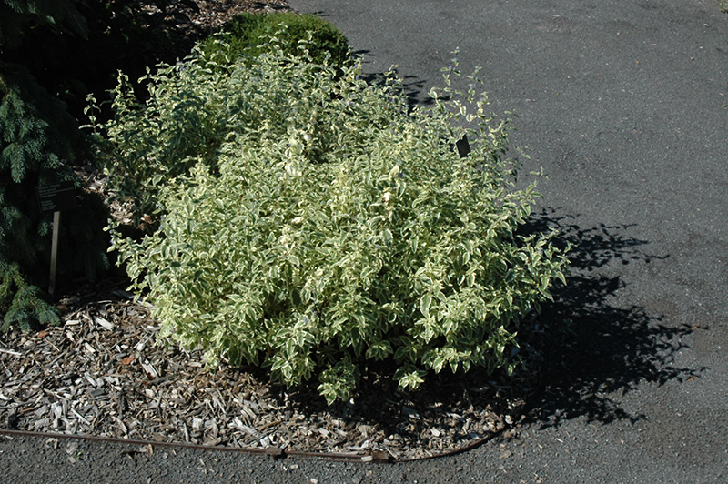 Hardiness Zone: 4b Other Names: Variegated Bluebeard, Blue Spirea, Blue Mist Shrub Description: Light, airy shrub with light-blue flowers held over blue-green and white variegated leaves; foliage has fuzzy undersides and is fragrant when crushed; a true butterfly magnet for the garden Ornamental Features White Suprise Varigated Caryopteris features dainty cymes of lavender flowers along the branches from late summer to early fall, which emerge from distinctive blue flower buds. The flowers are excellent for cutting. It has attractive bluish-green foliage edged in white which emerges buttery yellow in spring. The fuzzy oval leaves are highly ornamental but do not develop any appreciable fall color. Landscape Attributes White Suprise Varigated Caryopteris is an open multi-stemmed deciduous shrub with an upright spreading habit of growth. Its relatively fine texture sets it apart from other landscape plants with less refined foliage. This is a relatively low maintenance shrub, and is best pruned in late winter once the threat of extreme cold has passed. It is a good choice for attracting birds and butterflies to your yard, but is not particularly attractive to deer who tend to leave it alone in favor of tastier treats. It has no significant negative characteristics. White Suprise Varigated Caryopteris is recommended for the following landscape applications; Planting & Growing White Suprise Varigated Caryopteris will grow to be about 3 feet tall at maturity, with a spread of 3 feet. It tends to fill out right to the ground and therefore doesn't necessarily require facer plants in front. It grows at a fast rate, and under ideal conditions can be expected to live for approximately 20 years. This shrub should only be grown in full sunlight. It does best in average to evenly moist conditions, but will not tolerate standing water. It is not particular as to soil type or pH. It is somewhat tolerant of urban pollution. This particular variety is an interspecific hybrid. White Suprise Varigated Caryopteris makes a fine choice for the outdoor landscape, but it is also well-suited for use in outdoor pots and containers. With its upright habit of growth, it is best suited for use as a 'thriller' in the 'spiller-thriller-filler' container combination; plant it near the center of the pot, surrounded by smaller plants and those that spill over the edges. It is even sizeable enough that it can be grown alone in a suitable container. Note that when grown in a container, it may not perform exactly as indicated on the tag - this is to be expected. Also note that when growing plants in outdoor containers and baskets, they may require more frequent waterings than they would in the yard or garden.