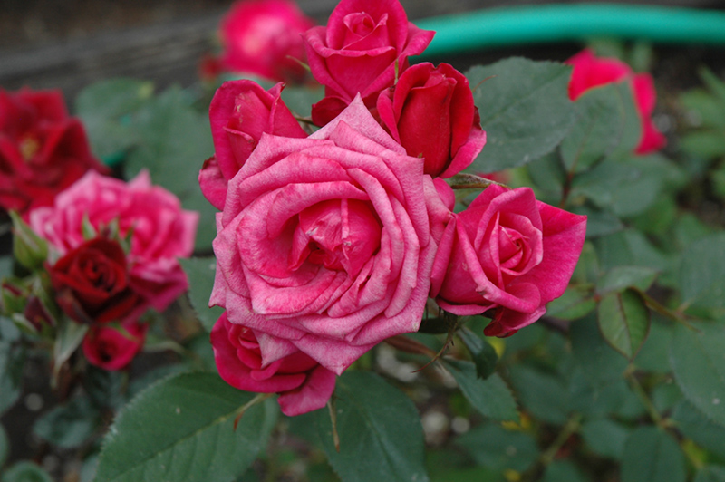 Hardiness Zone: 4b Group/Class: Miniature Rose Description: This variety presents blooms that are scarlet when young, maturing to vivid pink; blooms in flushes throughout the season; creates an impact in small spaces and containers; excellent disease resistance; benefits from winter protection Ornamental Features Aristocrat Rose features showy lightly-scented double hot pink flowers with scarlet overtones and gold eyes at the ends of the branches from late spring to early fall, which emerge from distinctive scarlet flower buds. The flowers are excellent for cutting. It has green deciduous foliage. The oval compound leaves do not develop any appreciable fall color. Landscape Attributes Aristocrat Rose is a multi-stemmed deciduous shrub with an upright spreading habit of growth. Its average texture blends into the landscape, but can be balanced by one or two finer or coarser trees or shrubs for an effective composition. This shrub will require occasional maintenance and upkeep, and is best pruned in late winter once the threat of extreme cold has passed. It is a good choice for attracting bees to your yard. It has no significant negative characteristics. Aristocrat Rose is recommended for the following landscape applications; Planting & Growing Aristocrat Rose will grow to be about 18 inches tall at maturity, with a spread of 18 inches. It tends to fill out right to the ground and therefore doesn't necessarily require facer plants in front. It grows at a fast rate, and under ideal conditions can be expected to live for approximately 30 years. This shrub should only be grown in full sunlight. It does best in average to evenly moist conditions, but will not tolerate standing water. It is not particular as to soil type or pH. It is highly tolerant of urban pollution and will even thrive in inner city environments. This particular variety is an interspecific hybrid. Aristocrat Rose makes a fine choice for the outdoor landscape, but it is also well-suited for use in outdoor pots and containers. It is often used as a 'filler' in the 'spiller-thriller-filler' container combination, providing a mass of flowers against which the larger thriller plants stand out. Note that when grown in a container, it may not perform exactly as indicated on the tag - this is to be expected. Also note that when growing plants in outdoor containers and baskets, they may require more frequent waterings than they would in the yard or garden.