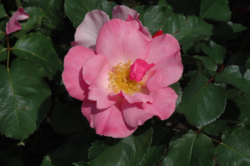 Hardiness Zone: 5b Group/Class: Floribunda Rose Description: Bushy and upright in form, this floribunda rose produces lovely pink single blooms with golden centers; a tremendous visual impact when massed in the garden; an extraordinary cut flower; beautiful deep green foliage that is moderately disease resistant Ornamental Features Dainty Maid Rose features showy pink flowers with gold eyes at the ends of the branches from mid spring to mid fall. The flowers are excellent for cutting. It has dark green deciduous foliage. The glossy oval compound leaves do not develop any appreciable fall color. Landscape Attributes Dainty Maid Rose is a multi-stemmed deciduous shrub with an upright spreading habit of growth. Its average texture blends into the landscape, but can be balanced by one or two finer or coarser trees or shrubs for an effective composition. This is a high maintenance shrub that will require regular care and upkeep, and is best pruned in late winter once the threat of extreme cold has passed. It is a good choice for attracting bees to your yard. Gardeners should be aware of the following characteristic(s) that may warrant special consideration; Dainty Maid Rose is recommended for the following landscape applications; Planting & Growing Dainty Maid Rose will grow to be about 4 feet tall at maturity, with a spread of 30 inches. It tends to fill out right to the ground and therefore doesn't necessarily require facer plants in front. It grows at a fast rate, and under ideal conditions can be expected to live for approximately 30 years. This shrub should only be grown in full sunlight. It does best in average to evenly moist conditions, but will not tolerate standing water. It is not particular as to soil type or pH. It is highly tolerant of urban pollution and will even thrive in inner city environments. This particular variety is an interspecific hybrid.