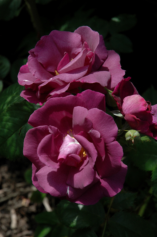 Hardiness Zone: 4b Group/Class: Shrub Rose Description: Close to producing a blue rose, clusters of flowers that open plum purple and fade to slate blue-maroon; flowers in flushes all season; may be trained onto trellises or walls; susceptible to blackspot Ornamental Features Rhapsody In Blue Rose features showy clusters of lightly-scented semi-double violet flowers with pink overtones and gold eyes at the ends of the branches from late spring to early fall, which emerge from distinctive plum purple flower buds. The flowers are excellent for cutting. It has forest green deciduous foliage. The serrated oval compound leaves do not develop any appreciable fall color. Landscape Attributes Rhapsody In Blue Rose is a multi-stemmed deciduous shrub with an upright spreading habit of growth. Its average texture blends into the landscape, but can be balanced by one or two finer or coarser trees or shrubs for an effective composition. This is a high maintenance shrub that will require regular care and upkeep, and is best pruned in late winter once the threat of extreme cold has passed. Gardeners should be aware of the following characteristic(s) that may warrant special consideration; Rhapsody In Blue Rose is recommended for the following landscape applications; Planting & Growing Rhapsody In Blue Rose will grow to be about 6 feet tall at maturity, with a spread of 6 feet. It tends to fill out right to the ground and therefore doesn't necessarily require facer plants in front, and is suitable for planting under power lines. It grows at a fast rate, and under ideal conditions can be expected to live for approximately 20 years. This shrub should only be grown in full sunlight. It does best in average to evenly moist conditions, but will not tolerate standing water. It is not particular as to soil type or pH. It is somewhat tolerant of urban pollution. This particular variety is an interspecific hybrid. Rhapsody In Blue Rose makes a fine choice for the outdoor landscape, but it is also well-suited for use in outdoor pots and containers. With its upright habit of growth, it is best suited for use as a 'thriller' in the 'spiller-thriller-filler' container combination; plant it near the center of the pot, surrounded by smaller plants and those that spill over the edges. It is even sizeable enough that it can be grown alone in a suitable container. Note that when grown in a container, it may not perform exactly as indicated on the tag - this is to be expected. Also note that when growing plants in outdoor containers and baskets, they may require more frequent waterings than they would in the yard or garden.