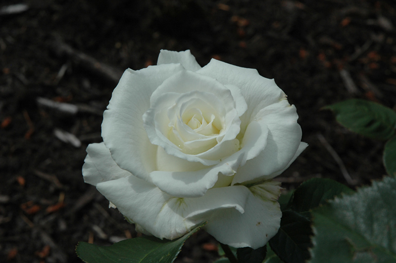 Hardiness Zone: 7a Group/Class: Grandiflora Rose Description: An extraordinary variety producing large, elegant white blooms on an upright, bushy plant that is disease resistant; this selection is perfect for sunny beds and shrub borders; strong citrus fragrance Ornamental Features White Lightnin' Rose features showy fragrant fully double white flowers at the ends of the branches from late spring to early fall. The flowers are excellent for cutting. It has dark green deciduous foliage. The glossy oval compound leaves turn yellow in fall. Landscape Attributes White Lightnin' Rose is a multi-stemmed deciduous shrub with an upright spreading habit of growth. Its average texture blends into the landscape, but can be balanced by one or two finer or coarser trees or shrubs for an effective composition. This is a high maintenance shrub that will require regular care and upkeep, and is best pruned in late winter once the threat of extreme cold has passed. Gardeners should be aware of the following characteristic(s) that may warrant special consideration; White Lightnin' Rose is recommended for the following landscape applications; Planting & Growing White Lightnin' Rose will grow to be about 4 feet tall at maturity, with a spread of 3 feet. It tends to fill out right to the ground and therefore doesn't necessarily require facer plants in front. It grows at a medium rate, and under ideal conditions can be expected to live for approximately 20 years. This shrub should only be grown in full sunlight. It does best in average to evenly moist conditions, but will not tolerate standing water. It is not particular as to soil type or pH. It is somewhat tolerant of urban pollution. This particular variety is an interspecific hybrid.
