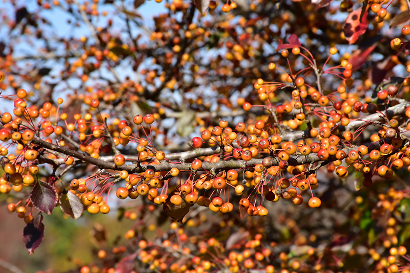 Hardiness Zone: 4a Other Names: Roseybloom, Crabapple Description: Bright red buds produce abundant showy white flowers with a blush of pink in spring, followed by small yellow-orange fruits and amazing red fall color; an exemplary ornamental feature for the garden border; needs well-drained soil and full sun Ornamental Features Satin Cloud Flowering Crab is bathed in stunning clusters of fragrant white flowers with shell pink overtones along the branches in mid spring, which emerge from distinctive red flower buds before the leaves. The fruits are showy yellow pomes with a orange blush, which are carried in abundance in early fall. It has dark green deciduous foliage. The pointy leaves turn an outstanding red in the fall. Landscape Attributes Satin Cloud Flowering Crab is a multi-stemmed deciduous shrub with a mounded form. Its average texture blends into the landscape, but can be balanced by one or two finer or coarser trees or shrubs for an effective composition. This is a high maintenance shrub that will require regular care and upkeep, and is best pruned in late winter once the threat of extreme cold has passed. It is a good choice for attracting birds, bees and butterflies to your yard. Gardeners should be aware of the following characteristic(s) that may warrant special consideration; Satin Cloud Flowering Crab is recommended for the following landscape applications; Planting & Growing Satin Cloud Flowering Crab will grow to be about 12 feet tall at maturity, with a spread of 15 feet. It has a low canopy with a typical clearance of 1 foot from the ground, and is suitable for planting under power lines. It grows at a medium rate, and under ideal conditions can be expected to live for 50 years or more. This shrub should only be grown in full sunlight. It prefers to grow in average to moist conditions, and shouldn't be allowed to dry out. It is not particular as to soil type or pH. It is highly tolerant of urban pollution and will even thrive in inner city environments. This particular variety is an interspecific hybrid.