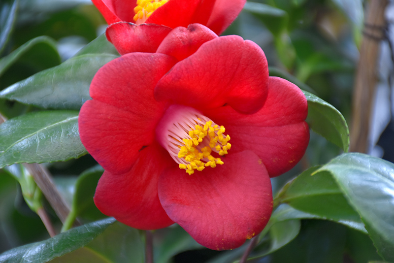 Hardiness Zone: 6a Other Names: Japanese Camellia, Common Camellia Description: Lustrous evergreen foliage cover this upright, vigorous shrub; masses of rich red single blooms with showy yellow stamens in early spring; this variety demonstrates exceptional cold resistance; provide rich, acidic, moist, well-drained soil Ornamental Features Korean Fire Camellia features showy red round flowers with yellow eyes at the ends of the branches in early spring. It has dark green evergreen foliage. The glossy pointy leaves remain dark green throughout the winter. Landscape Attributes Korean Fire Camellia is a multi-stemmed evergreen shrub with an upright spreading habit of growth. Its average texture blends into the landscape, but can be balanced by one or two finer or coarser trees or shrubs for an effective composition. This is a relatively low maintenance shrub, and should only be pruned after flowering to avoid removing any of the current season's flowers. It has no significant negative characteristics. Korean Fire Camellia is recommended for the following landscape applications; Planting & Growing Korean Fire Camellia will grow to be about 10 feet tall at maturity, with a spread of 8 feet. It has a low canopy with a typical clearance of 1 foot from the ground, and is suitable for planting under power lines. It grows at a medium rate, and under ideal conditions can be expected to live for 40 years or more. This shrub does best in partial shade to shade. It requires an evenly moist well-drained soil for optimal growth, but will die in standing water. It is particular about its soil conditions, with a strong preference for rich, acidic soils. It is somewhat tolerant of urban pollution, and will benefit from being planted in a relatively sheltered location. Consider applying a thick mulch around the root zone in both summer and winter to conserve soil moisture and protect it in exposed locations or colder microclimates. This is a selected variety of a species not originally from North America. Korean Fire Camellia makes a fine choice for the outdoor landscape, but it is also well-suited for use in outdoor pots and containers. Its large size and upright habit of growth lend it for use as a solitary accent, or in a composition surrounded by smaller plants around the base and those that spill over the edges. It is even sizeable enough that it can be grown alone in a suitable container. Note that when grown in a container, it may not perform exactly as indicated on the tag - this is to be expected. Also note that when growing plants in outdoor containers and baskets, they may require more frequent waterings than they would in the yard or garden.
