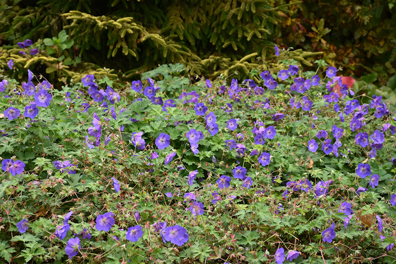 Hardiness Zone: 3b Other Names: Hardy Geranium Description: Vigorous growth with long flowering period, this selection features mounds of deep green foliage topped with gorgeous violet-blue flowers; blooms from late spring to early frost; excellent for borders, containers and hanging baskets Ornamental Features Rozanne Cranesbill has masses of beautiful blue flowers with white eyes at the ends of the stems from late spring to mid summer, which are most effective when planted in groupings. Its deeply cut lobed palmate leaves are forest green in color. As an added bonus, the foliage turns a gorgeous red in the fall. Landscape Attributes Rozanne Cranesbill is an herbaceous perennial with a mounded form. Its relatively fine texture sets it apart from other garden plants with less refined foliage. This is a relatively low maintenance plant, and should only be pruned after flowering to avoid removing any of the current season's flowers. It is a good choice for attracting butterflies to your yard, but is not particularly attractive to deer who tend to leave it alone in favor of tastier treats. It has no significant negative characteristics. Rozanne Cranesbill is recommended for the following landscape applications; Planting & Growing Rozanne Cranesbill will grow to be about 18 inches tall at maturity, with a spread of 24 inches. When grown in masses or used as a bedding plant, individual plants should be spaced approximately 20 inches apart. Its foliage tends to remain dense right to the ground, not requiring facer plants in front. It grows at a medium rate, and under ideal conditions can be expected to live for approximately 10 years. As an herbaceous perennial, this plant will usually die back to the crown each winter, and will regrow from the base each spring. Be careful not to disturb the crown in late winter when it may not be readily seen! This plant does best in full sun to partial shade. It is very adaptable to both dry and moist locations, and should do just fine under typical garden conditions. It is not particular as to soil type or pH. It is somewhat tolerant of urban pollution. This particular variety is an interspecific hybrid. It can be propagated by division; however, as a cultivated variety, be aware that it may be subject to certain restrictions or prohibitions on propagation. Rozanne Cranesbill is a fine choice for the garden, but it is also a good selection for planting in outdoor containers and hanging baskets. It is often used as a 'filler' in the 'spiller-thriller-filler' container combination, providing a mass of flowers against which the thriller plants stand out. Note that when growing plants in outdoor containers and baskets, they may require more frequent waterings than they would in the yard or garden.