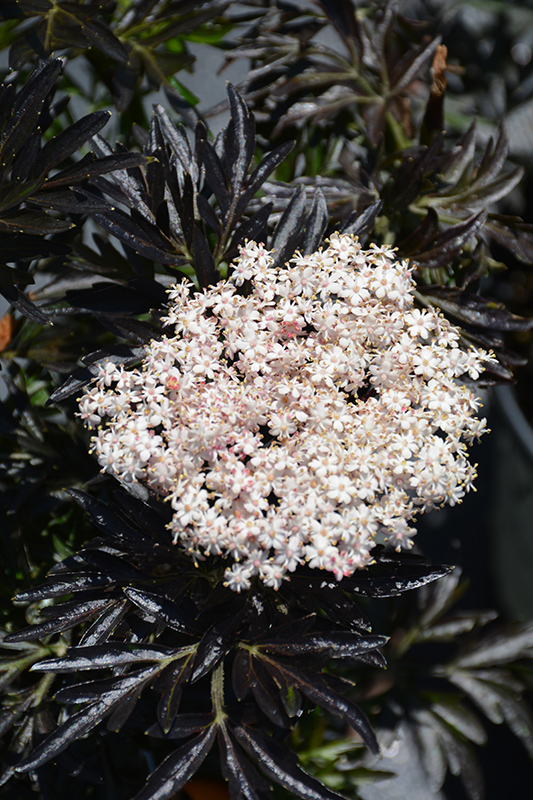 Hardiness Zone: 3b Other Names: Common Elder, Elderberry, Strait-Laced Brand: Proven Winners Description: A wonderful color contrast shrub, with compound foliage that borders on true black, against which the soft pink flowers definitely stand out, a true garden accent; grows into a columnar form that is great for screening Ornamental Features Laced Up® Elder features showy clusters of fragrant shell pink flowers held atop the branches in early summer, which emerge from distinctive rose flower buds. It has attractive black deciduous foliage which emerges burgundy in spring. The serrated compound leaves are highly ornamental but do not develop any appreciable fall color. The black fruits are held in clusters in early fall. Landscape Attributes Laced Up® Elder is a multi-stemmed deciduous shrub with a narrowly upright and columnar growth habit. Its relatively coarse texture can be used to stand it apart from other landscape plants with finer foliage. This is a high maintenance shrub that will require regular care and upkeep, and is best pruned in late winter once the threat of extreme cold has passed. It is a good choice for attracting birds to your yard. Gardeners should be aware of the following characteristic(s) that may warrant special consideration; Laced Up® Elder is recommended for the following landscape applications; Planting & Growing Laced Up® Elder will grow to be about 10 feet tall at maturity, with a spread of 4 feet. It has a low canopy with a typical clearance of 1 foot from the ground, and is suitable for planting under power lines. It grows at a fast rate, and under ideal conditions can be expected to live for approximately 30 years. This shrub does best in full sun to partial shade. It is quite adaptable, prefering to grow in average to wet conditions, and will even tolerate some standing water. It is not particular as to soil type or pH. It is highly tolerant of urban pollution and will even thrive in inner city environments. This is a selected variety of a species not originally from North America.