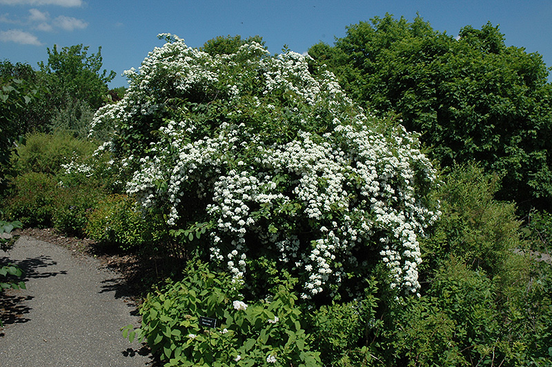 Hardiness Zone: 4a Other Names: Himalayan Spirea Description: A graceful shrub, covered in snow-white flowers in early to mid-summer, held along gracefully arching branches, attractive shape and foliage the rest of the year; tolerates partial shade but flowers best in full sun Ornamental Features Grey Stem Spirea is draped in stunning corymbs of white flowers held atop the branches from early to mid summer. It has grayish green deciduous foliage. The small fuzzy oval leaves turn an outstanding coppery-bronze in the fall. Landscape Attributes Grey Stem Spirea is a multi-stemmed deciduous shrub with a shapely form and gracefully arching branches. Its relatively fine texture sets it apart from other landscape plants with less refined foliage. This shrub will require occasional maintenance and upkeep, and should only be pruned after flowering to avoid removing any of the current season's flowers. It is a good choice for attracting butterflies to your yard, but is not particularly attractive to deer who tend to leave it alone in favor of tastier treats. It has no significant negative characteristics. Grey Stem Spirea is recommended for the following landscape applications; Planting & Growing Grey Stem Spirea will grow to be about 15 feet tall at maturity, with a spread of 15 feet. It tends to fill out right to the ground and therefore doesn't necessarily require facer plants in front, and is suitable for planting under power lines. It grows at a fast rate, and under ideal conditions can be expected to live for approximately 20 years. This shrub does best in full sun to partial shade. It prefers to grow in average to moist conditions, and shouldn't be allowed to dry out. It is not particular as to soil type or pH. It is highly tolerant of urban pollution and will even thrive in inner city environments. This species is not originally from North America.
