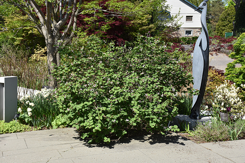 Hardiness Zone: 4b Other Names: Korean Spice Description: An attractive, compact variety, covered in intoxicatingly sweet-smelling ball-shaped clusters of white flowers with hints of pink, in early spring; plant where the fragrance can be enjoyed; tidy the rest of the year; makes a beautiful accent specimen Ornamental Features Diana Koreanspice Viburnum is smothered in stunning balls of fragrant white flowers at the ends of the branches from early to mid spring, which emerge from distinctive rose flower buds. It has dark green deciduous foliage. The crinkled heart-shaped leaves turn an outstanding red in the fall. The black fruits are held in clusters from late summer to late fall. Landscape Attributes Diana Koreanspice Viburnum is a dense multi-stemmed deciduous shrub with an upright spreading habit of growth. Its average texture blends into the landscape, but can be balanced by one or two finer or coarser trees or shrubs for an effective composition. This is a relatively low maintenance shrub, and should only be pruned after flowering to avoid removing any of the current season's flowers. It is a good choice for attracting birds to your yard, but is not particularly attractive to deer who tend to leave it alone in favor of tastier treats. It has no significant negative characteristics. Diana Koreanspice Viburnum is recommended for the following landscape applications; Planting & Growing Diana Koreanspice Viburnum will grow to be about 5 feet tall at maturity, with a spread of 5 feet. It tends to be a little leggy, with a typical clearance of 1 foot from the ground, and is suitable for planting under power lines. It grows at a slow rate, and under ideal conditions can be expected to live for 40 years or more. This shrub does best in full sun to partial shade. It prefers to grow in average to moist conditions, and shouldn't be allowed to dry out. It is not particular as to soil type or pH. It is somewhat tolerant of urban pollution. This is a selected variety of a species not originally from North America.