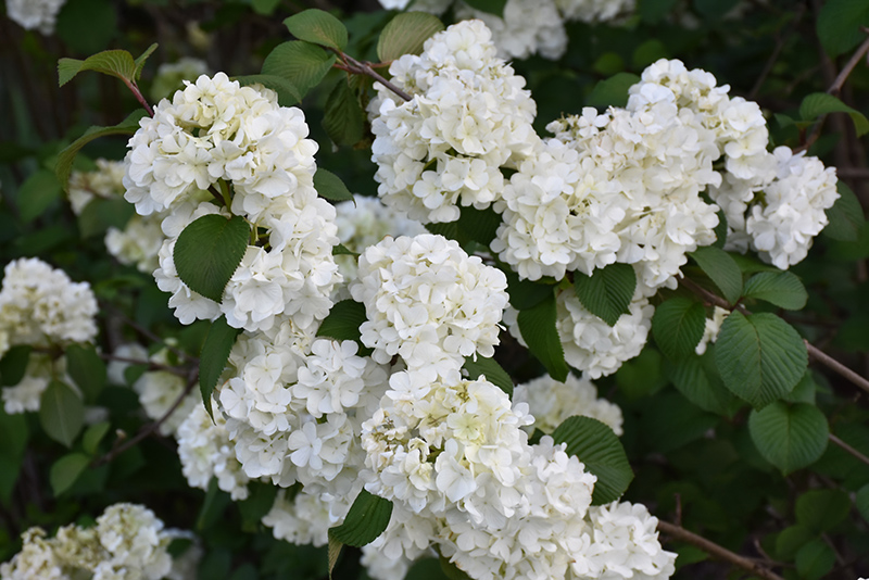 Hardiness Zone: 5a Description: A breathtaking shrub with huge ball-shaped white flowers in spring, showy almost beyond words; flowers are sterile so the shrub does not produce fruit; serrated, deeply veined forest green foliage add up to a fine specimen plant; burgundy fall color Ornamental Features Sawtooth Snowball Viburnum features showy balls of white flowers at the ends of the branches in mid spring. It has attractive forest green deciduous foliage. The serrated oval leaves are highly ornamental and turn an outstanding burgundy in the fall. Landscape Attributes Sawtooth Snowball Viburnum is a multi-stemmed deciduous shrub with a more or less rounded form. Its average texture blends into the landscape, but can be balanced by one or two finer or coarser trees or shrubs for an effective composition. This is a relatively low maintenance shrub, and should only be pruned after flowering to avoid removing any of the current season's flowers. Deer don't particularly care for this plant and will usually leave it alone in favor of tastier treats. It has no significant negative characteristics. Sawtooth Snowball Viburnum is recommended for the following landscape applications; Planting & Growing Sawtooth Snowball Viburnum will grow to be about 10 feet tall at maturity, with a spread of 10 feet. It has a low canopy with a typical clearance of 1 foot from the ground, and is suitable for planting under power lines. It grows at a medium rate, and under ideal conditions can be expected to live for 40 years or more. This shrub does best in full sun to partial shade. It does best in average to evenly moist conditions, but will not tolerate standing water. It is not particular as to soil type or pH. It is highly tolerant of urban pollution and will even thrive in inner city environments. This is a selected variety of a species not originally from North America.