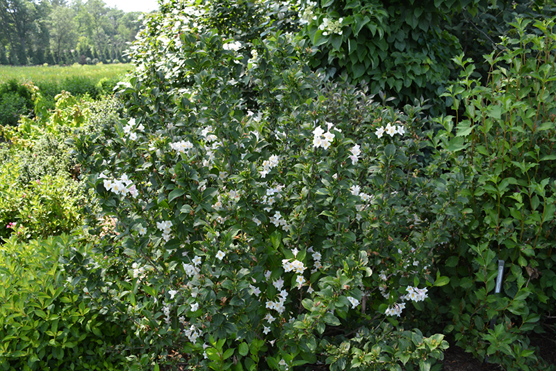 Hardiness Zone: 4a Description: A beautiful shrub that blooms in early summer, featuring white trumpet-shaped flowers, with yellow throats and pale pink highlights; attracts butterflies; great for the back of flower beds, or as a landscape specimen Ornamental Features Volans Weigela features showy clusters of lightly-scented white trumpet-shaped flowers with yellow throats and a shell pink reverse along the branches in early summer. It has dark green deciduous foliage. The crinkled narrow leaves do not develop any appreciable fall color. Landscape Attributes Volans Weigela is a multi-stemmed deciduous shrub with an upright spreading habit of growth. Its relatively coarse texture can be used to stand it apart from other landscape plants with finer foliage. This shrub will require occasional maintenance and upkeep, and is best pruned in late winter once the threat of extreme cold has passed. It is a good choice for attracting bees and butterflies to your yard. It has no significant negative characteristics. Volans Weigela is recommended for the following landscape applications; Planting & Growing Volans Weigela will grow to be about 5 feet tall at maturity, with a spread of 4 feet. It has a low canopy, and is suitable for planting under power lines. It grows at a medium rate, and under ideal conditions can be expected to live for approximately 30 years. This shrub does best in full sun to partial shade. It prefers to grow in average to moist conditions, and shouldn't be allowed to dry out. It is not particular as to soil type or pH. It is highly tolerant of urban pollution and will even thrive in inner city environments. Consider applying a thick mulch around the root zone in winter to protect it in exposed locations or colder microclimates. This particular variety is an interspecific hybrid. Volans Weigela makes a fine choice for the outdoor landscape, but it is also well-suited for use in outdoor pots and containers. With its upright habit of growth, it is best suited for use as a 'thriller' in the 'spiller-thriller-filler' container combination; plant it near the center of the pot, surrounded by smaller plants and those that spill over the edges. It is even sizeable enough that it can be grown alone in a suitable container. Note that when grown in a container, it may not perform exactly as indicated on the tag - this is to be expected. Also note that when growing plants in outdoor containers and baskets, they may require more frequent waterings than they would in the yard or garden.