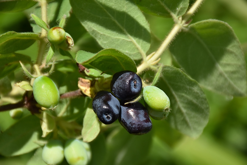 Hardiness Zone: 2a Other Names: Sweetberry Honeysuckle, Haskap Description: An interesting hardy shrub with clean foliage and delicious bluish-purple berries that are edible; dense growing habit; Polar Jewel or Aurora are good for cross pollination; selected for better fruit production and higher yields Edible Qualities Indigo Gem Honeyberry is a medium-sized shrub that is commonly grown for its edible qualities, although it does have ornamental merits as well. It produces blue round berries which are usually ready for picking from late spring to early summer. The berries have a sweet taste. The berries are most often used in the following ways: Features & Attributes Indigo Gem Honeyberry features subtle buttery yellow flowers along the branches in early spring. It has green deciduous foliage. The narrow leaves do not develop any appreciable fall color. It features an abundance of magnificent blue berries in late spring. This is a dense multi-stemmed deciduous shrub with a more or less rounded form. Its average texture blends into the landscape, but can be balanced by one or two finer or coarser trees or shrubs for an effective composition. This plant will require occasional maintenance and upkeep, and is best pruned in late winter once the threat of extreme cold has passed. It is a good choice for attracting butterflies to your yard. It has no significant negative characteristics. Aside from its primary use as an edible, Indigo Gem Honeyberry is sutiable for the following landscape applications; Planting & Growing Indigo Gem Honeyberry will grow to be about 5 feet tall at maturity, with a spread of 4 feet. It tends to fill out right to the ground and therefore doesn't necessarily require facer plants in front, and is suitable for planting under power lines. It grows at a medium rate, and under ideal conditions can be expected to live for approximately 20 years. While it is considered to be somewhat self-pollinating, it tends to set heavier quantities of fruit with a different variety of the same species growing nearby. This shrub is quite ornamental as well as edible, and is as much at home in a landscape or flower garden as it is in a designated edibles garden. It does best in full sun to partial shade. It prefers dry to average moisture levels with very well-drained soil, and will often die in standing water. It is not particular as to soil type or pH. It is highly tolerant of urban pollution and will even thrive in inner city environments. This is a selected variety of a species not originally from North America.