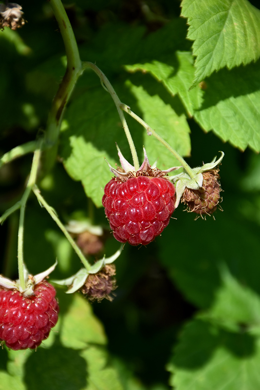 Hardiness Zone: 4a Group/Class: Everbearing Description: A productive variety with tasty red berries in late spring, on second year canes, then a larger flush in late summer on first year canes; raspberries require careful placement in the landscape, a specific pruning regimen and protection from birds Edible Qualities September Raspberry is a medium-sized shrub that is typically grown for its edible qualities. It produces red heart-shaped berries which are usually ready for picking from late spring to late summer. The berries have a sweet taste and a juicy texture. The berries are most often used in the following ways: Features & Attributes September Raspberry has rich green deciduous foliage on a plant with an upright spreading habit of growth. The fuzzy oval compound leaves do not develop any appreciable fall color. It features an abundance of magnificent red berries from late spring to late summer. This is an open multi-stemmed deciduous shrub with an upright spreading habit of growth. Its relatively coarse texture can be used to stand it apart from other landscape plants with finer foliage. This is a high maintenance plant that will require regular care and upkeep. Each spring, cut back all dead and two-year old canes to the ground, leaving only last year's growth standing. It is a good choice for attracting birds to your yard. Gardeners should be aware of the following characteristic(s) that may warrant special consideration; Aside from its primary use as an edible, September Raspberry is sutiable for the following landscape applications; Planting & Growing September Raspberry will grow to be about 6 feet tall at maturity, with a spread of 6 feet. It tends to be a little leggy, with a typical clearance of 1 foot from the ground, and is suitable for planting under power lines. It grows at a fast rate, and under ideal conditions can be expected to live for approximately 10 years. This is a self-pollinating variety, so it doesn't require a second plant nearby to set fruit. This shrub may not always play well with others; as such, it is best grown in its own designated garden space or isolated area of an edibles garden. It should only be grown in full sunlight. It prefers to grow in average to moist conditions, and shouldn't be allowed to dry out. It is not particular as to soil type or pH. It is somewhat tolerant of urban pollution. This particular variety is an interspecific hybrid. It can be propagated by division; however, as a cultivated variety, be aware that it may be subject to certain restrictions or prohibitions on propagation.