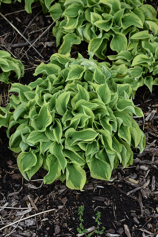 Hardiness Zone: 2a Other Names: Plantain Lily, Funkia Brand: Walters Gardens Description: This interesting variety has leaves with a single prominent wave, that are dark green, with pale yellow margins that mature to cream; lavender-purple flowers in mid summer; a vigorous grower with an unusual texture; quite hardy and low maintenance Ornamental Features Wrinkle in Time Hosta features dainty spikes of lavender tubular flowers rising above the foliage from early to mid summer, which emerge from distinctive purple flower buds. Its attractive twisted heart-shaped leaves remain dark green in color with distinctive buttery yellow edges and tinges of creamy white throughout the season. Landscape Attributes Wrinkle in Time Hosta is an herbaceous perennial with tall flower stalks held atop a low mound of foliage. Its medium texture blends into the garden, but can always be balanced by a couple of finer or coarser plants for an effective composition. This is a relatively low maintenance plant, and is best cleaned up in early spring before it resumes active growth for the season. Gardeners should be aware of the following characteristic(s) that may warrant special consideration; Wrinkle in Time Hosta is recommended for the following landscape applications; Planting & Growing Wrinkle in Time Hosta will grow to be about 10 inches tall at maturity extending to 15 inches tall with the flowers, with a spread of 30 inches. When grown in masses or used as a bedding plant, individual plants should be spaced approximately 26 inches apart. Its foliage tends to remain low and dense right to the ground. It grows at a medium rate, and under ideal conditions can be expected to live for approximately 10 years. As an herbaceous perennial, this plant will usually die back to the crown each winter, and will regrow from the base each spring. Be careful not to disturb the crown in late winter when it may not be readily seen! This plant does best in partial shade to shade. It prefers to grow in average to moist conditions, and shouldn't be allowed to dry out. It is not particular as to soil type or pH. It is somewhat tolerant of urban pollution. This particular variety is an interspecific hybrid. It can be propagated by division; however, as a cultivated variety, be aware that it may be subject to certain restrictions or prohibitions on propagation.