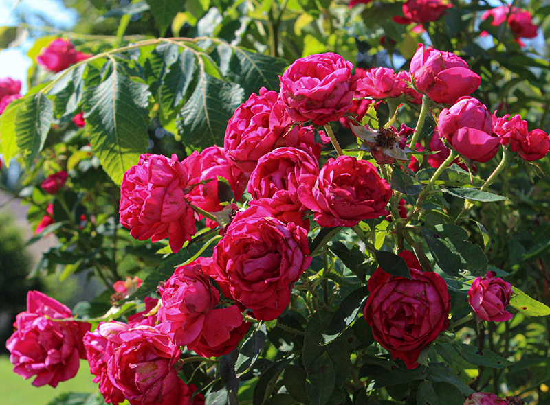 Hardiness Zone: 4b Group/Class: Shrub Rose Brand: Garden Debut Description: Huge, dense, double red blooms compliment dark, clean foliage that is robust and disease resistant; well suited for containers, as a landscape accent, or along sunny borders Ornamental Features The Grand Champion™ Rose features showy fragrant double red flowers at the ends of the branches from late spring to mid fall. The flowers are excellent for cutting. It has dark green deciduous foliage. The glossy oval compound leaves do not develop any appreciable fall color. Landscape Attributes The Grand Champion™ Rose is a multi-stemmed deciduous shrub with an upright spreading habit of growth. Its average texture blends into the landscape, but can be balanced by one or two finer or coarser trees or shrubs for an effective composition. This shrub will require occasional maintenance and upkeep, and is best pruned in late winter once the threat of extreme cold has passed. It is a good choice for attracting bees to your yard. Gardeners should be aware of the following characteristic(s) that may warrant special consideration; The Grand Champion™ Rose is recommended for the following landscape applications; Planting & Growing The Grand Champion™ Rose will grow to be about 4 feet tall at maturity, with a spread of 4 feet. It tends to fill out right to the ground and therefore doesn't necessarily require facer plants in front. It grows at a fast rate, and under ideal conditions can be expected to live for approximately 30 years. This shrub does best in full sun to partial shade. It does best in average to evenly moist conditions, but will not tolerate standing water. It is not particular as to soil type or pH. It is highly tolerant of urban pollution and will even thrive in inner city environments. This particular variety is an interspecific hybrid.