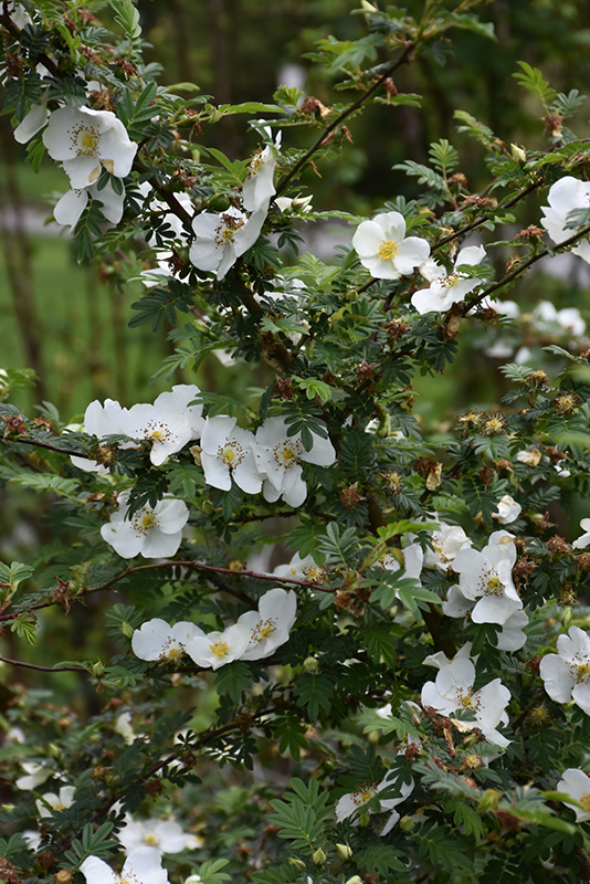 Hardiness Zone: 4a Other Names: Scotch Rose, Burnet Rose, Rosa pimpinellifolia Description: This is the species that defines spiny when it comes to roses; the curiously grayish-green stems are almost disturbingly covered in dense sharp spines, makes for an impenetrable barrier; sweetly scented soft white flowers in spring along the stems Ornamental Features Altai Scots Rose features showy fragrant white flowers with yellow eyes at the ends of the branches from late spring to early summer. The flowers are excellent for cutting. It has emerald green deciduous foliage. The glossy oval compound leaves do not develop any appreciable fall color. The fruits are showy deep purple hips with black overtones, which are displayed in early fall. The spiny bark and grayish green branches are extremely showy and add significant winter interest. Landscape Attributes Altai Scots Rose is a dense multi-stemmed deciduous shrub with a mounded form. Its average texture blends into the landscape, but can be balanced by one or two finer or coarser trees or shrubs for an effective composition. This is a high maintenance shrub that will require regular care and upkeep, and is best pruned in late winter once the threat of extreme cold has passed. It is a good choice for attracting bees to your yard. Gardeners should be aware of the following characteristic(s) that may warrant special consideration; Altai Scots Rose is recommended for the following landscape applications; Planting & Growing Altai Scots Rose will grow to be about 4 feet tall at maturity, with a spread of 4 feet. It tends to fill out right to the ground and therefore doesn't necessarily require facer plants in front. It grows at a medium rate, and under ideal conditions can be expected to live for approximately 25 years. This shrub does best in full sun to partial shade. It is very adaptable to both dry and moist growing conditions, but will not tolerate any standing water. It is considered to be drought-tolerant, and thus makes an ideal choice for xeriscaping or the moisture-conserving landscape. It is not particular as to soil type or pH, and is able to handle environmental salt. It is highly tolerant of urban pollution and will even thrive in inner city environments. This species is not originally from North America.