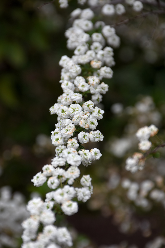 Hardiness Zone: 4a Description: An heirloom shrub which is smothered in double white flowers along the wiry branches in early spring; presents good fall color; a rather shrubby growth habit, with upright stems that are quite leggy; needs underplanting and regular pruning Ornamental Features Bridalwreath Spirea is smothered in stunning clusters of double white flowers along the branches in early spring before the leaves. It has dark green deciduous foliage. The small serrated oval leaves turn outstanding shades of red, orange and yellow in the fall. Landscape Attributes Bridalwreath Spirea is an open multi-stemmed deciduous shrub with an upright spreading habit of growth. Its relatively fine texture sets it apart from other landscape plants with less refined foliage. This is a high maintenance shrub that will require regular care and upkeep, and should only be pruned after flowering to avoid removing any of the current season's flowers. It is a good choice for attracting butterflies to your yard, but is not particularly attractive to deer who tend to leave it alone in favor of tastier treats. It has no significant negative characteristics. Bridalwreath Spirea is recommended for the following landscape applications; Planting & Growing Bridalwreath Spirea will grow to be about 8 feet tall at maturity, with a spread of 8 feet. It tends to be a little leggy, with a typical clearance of 1 foot from the ground, and is suitable for planting under power lines. It grows at a medium rate, and under ideal conditions can be expected to live for approximately 20 years. This shrub should only be grown in full sunlight. It prefers to grow in average to moist conditions, and shouldn't be allowed to dry out. It is not particular as to soil type or pH. It is highly tolerant of urban pollution and will even thrive in inner city environments. This is a selected variety of a species not originally from North America.