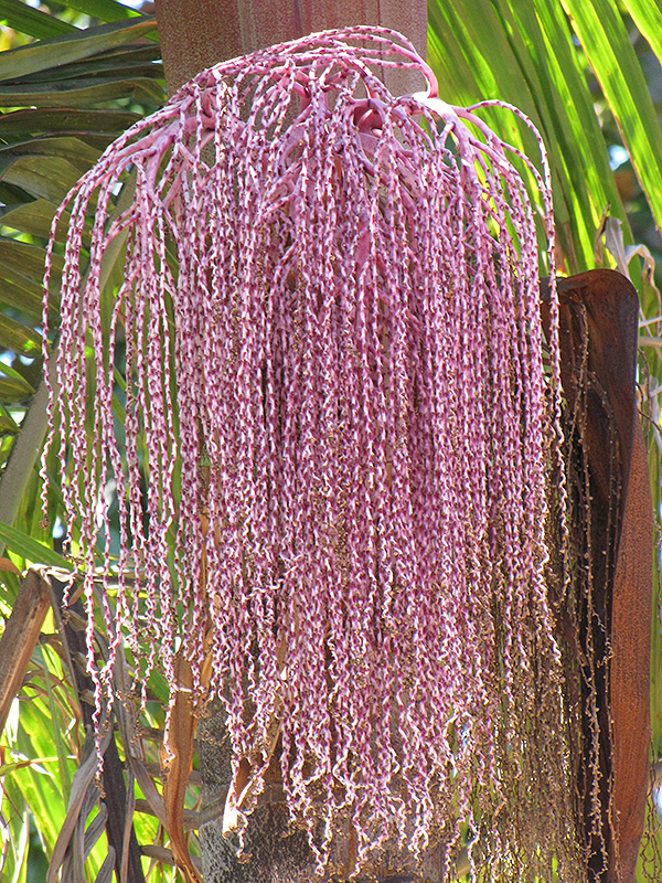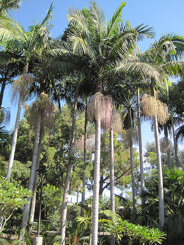 Hardiness Zone: 9a Other Names: King Palm Description: These majestic palms can grow quite tall, leaves can be 7 feet long or more; likes water more than most palms and may even thrive in poorly drained areas; attractive planted individually or in groupings Ornamental Features Bangalow Palm features showy clusters of coral-pink flowers with violet overtones hanging below the branches in mid spring. It has green evergreen foliage. The glossy narrow pinnately compound leaves remain green throughout the winter. The red fruits are held in clusters from early summer to early fall. Landscape Attributes Bangalow Palm is an evergreen tree with a strong central leader and a towering form, with a high canopy of foliage concentrated at the top of the plant. Its relatively fine texture sets it apart from other landscape plants with less refined foliage. This is a relatively low maintenance tree, and should not require much pruning, except when necessary, such as to remove dieback. It is a good choice for attracting birds to your yard. Gardeners should be aware of the following characteristic(s) that may warrant special consideration; Bangalow Palm is recommended for the following landscape applications; Planting & Growing Bangalow Palm will grow to be about 80 feet tall at maturity, with a spread of 15 feet. It has a high canopy of foliage that sits well above the ground, and should not be planted underneath power lines. As it matures, the lower branches of this tree can be strategically removed to create a high enough canopy to support unobstructed human traffic underneath. It grows at a fast rate, and under ideal conditions can be expected to live for 60 years or more. This is a self-pollinating variety, so it doesn't require a second plant nearby to set fruit. This tree does best in full sun to partial shade. It prefers to grow in average to moist conditions, and shouldn't be allowed to dry out. It is not particular as to soil type or pH. It is somewhat tolerant of urban pollution. This species is not originally from North America.