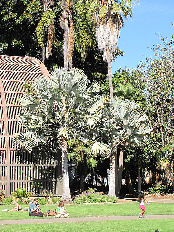Hardiness Zone: 9a Description: A striking palm that eventually can become quite large; huge, fan like leaves of silvery blue-green emerge from solitary trunks; highly tolerant of intense inland heat, but also does well in coastal areas; an outstanding landscape accent Ornamental Features Bismarck Palm (tree form) has attractive bluish-green foliage with hints of silvery blue on a tree with the bulk of the canopy held atop a towering trunk or stem. The enormous palmate leaves are highly ornamental and remain bluish-green throughout the winter. However, the fruit can be messy in the landscape and may require occasional clean-up. The rough tan bark is extremely showy and adds significant winter interest. Landscape Attributes Bismarck Palm (tree form) is an evergreen tree with a strong central leader and a towering form, with a high canopy of foliage concentrated at the top of the plant. Its average texture blends into the landscape, but can be balanced by one or two finer or coarser trees or shrubs for an effective composition. This tree will require occasional maintenance and upkeep, and should not require much pruning, except when necessary, such as to remove dieback. It is a good choice for attracting birds to your yard. It has no significant negative characteristics. Bismarck Palm (tree form) is recommended for the following landscape applications; Planting & Growing Bismarck Palm (tree form) will grow to be about 40 feet tall at maturity, with a spread of 20 feet. It has a high canopy of foliage that sits well above the ground, and should not be planted underneath power lines. As it matures, the lower branches of this tree can be strategically removed to create a high enough canopy to support unobstructed human traffic underneath. It grows at a slow rate, and under ideal conditions can be expected to live for 80 years or more. This tree should only be grown in full sunlight. It is very adaptable to both dry and moist locations, and should do just fine under average home landscape conditions. It is considered to be drought-tolerant, and thus makes an ideal choice for xeriscaping or the moisture-conserving landscape. It is not particular as to soil type or pH. It is somewhat tolerant of urban pollution. This species is not originally from North America.