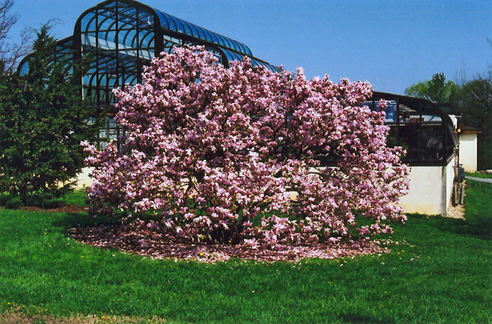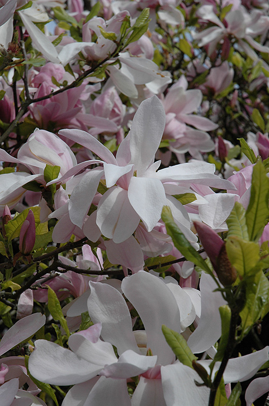 Hardiness Zone: 4b Group/Class: Little Girl Series Description: A hybrid magnolia selected for its incredible pink cup-shaped flowers with white insides in spring before the leaves and improved hardiness; a reasonably large shrub, makes a fine ornamental specimen for smaller yards Ornamental Features Pinkie Magnolia is smothered in stunning fragrant purple cup-shaped flowers with shell pink overtones held atop the branches in early spring before the leaves. It has dark green deciduous foliage. The large pointy leaves turn coppery-bronze in fall. Landscape Attributes Pinkie Magnolia is a multi-stemmed deciduous shrub with a more or less rounded form. Its relatively coarse texture can be used to stand it apart from other landscape plants with finer foliage. This is a relatively low maintenance shrub, and should only be pruned after flowering to avoid removing any of the current season's flowers. It has no significant negative characteristics. Pinkie Magnolia is recommended for the following landscape applications; Planting & Growing Pinkie Magnolia will grow to be about 15 feet tall at maturity, with a spread of 15 feet. It has a low canopy with a typical clearance of 2 feet from the ground, and is suitable for planting under power lines. It grows at a medium rate, and under ideal conditions can be expected to live for 50 years or more. This shrub does best in full sun to partial shade. It requires an evenly moist well-drained soil for optimal growth, but will die in standing water. It is not particular as to soil type, but has a definite preference for acidic soils. It is quite intolerant of urban pollution, therefore inner city or urban streetside plantings are best avoided. Consider applying a thick mulch around the root zone in winter to protect it in exposed locations or colder microclimates. This particular variety is an interspecific hybrid.