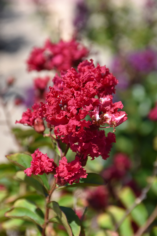 Hardiness Zone: 6b Other Names: Crape Myrtle, Crepe Myrtle Description: This stunning dwarf variety produces volumes of deep red blooms all summer, followed by orange-red fall foliage; captivating focal point for the garden or border; also good for container planting Ornamental Features Mandi Crapemyrtle is draped in stunning panicles of red frilly flowers at the ends of the branches from early to late summer. It has attractive dark green deciduous foliage which emerges coppery-bronze in spring. The oval leaves are highly ornamental and turn red and in fall. Landscape Attributes Mandi Crapemyrtle is a dense multi-stemmed deciduous shrub with an upright spreading habit of growth. Its relatively fine texture sets it apart from other landscape plants with less refined foliage. This shrub will require occasional maintenance and upkeep. Trim off the flower heads after they fade and die to encourage more blooms late into the season. It has no significant negative characteristics. Mandi Crapemyrtle is recommended for the following landscape applications; Planting & Growing Mandi Crapemyrtle will grow to be about 7 feet tall at maturity, with a spread of 5 feet. It tends to be a little leggy, with a typical clearance of 1 foot from the ground, and is suitable for planting under power lines. It grows at a fast rate, and under ideal conditions can be expected to live for approximately 20 years. This shrub does best in full sun to partial shade. It prefers to grow in average to moist conditions, and shouldn't be allowed to dry out. It is very fussy about its soil conditions and must have rich, acidic soils to ensure success, and is subject to chlorosis (yellowing) of the foliage in alkaline soils. It is highly tolerant of urban pollution and will even thrive in inner city environments. This is a selected variety of a species not originally from North America. Mandi Crapemyrtle makes a fine choice for the outdoor landscape, but it is also well-suited for use in outdoor pots and containers. With its upright habit of growth, it is best suited for use as a 'thriller' in the 'spiller-thriller-filler' container combination; plant it near the center of the pot, surrounded by smaller plants and those that spill over the edges. It is even sizeable enough that it can be grown alone in a suitable container. Note that when grown in a container, it may not perform exactly as indicated on the tag - this is to be expected. Also note that when growing plants in outdoor containers and baskets, they may require more frequent waterings than they would in the yard or garden.