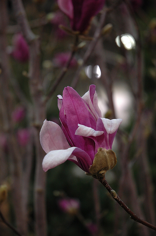 Hardiness Zone: 4b Group/Class: Little Girl Series Description: A hybrid magnolia selected for its wonderful purple cup-shaped flowers in spring before the leaves and improved hardiness; a small, upright shrub, excellent as a specimen in the garden, wonderful as an accent in foundation plantings Ornamental Features Ricki Magnolia is bathed in stunning fragrant fuchsia cup-shaped flowers with pink overtones held atop the branches in early spring before the leaves. It has dark green deciduous foliage. The large pointy leaves turn coppery-bronze in fall. Landscape Attributes Ricki Magnolia is a multi-stemmed deciduous shrub with a more or less rounded form. Its relatively coarse texture can be used to stand it apart from other landscape plants with finer foliage. This is a relatively low maintenance shrub, and should only be pruned after flowering to avoid removing any of the current season's flowers. It has no significant negative characteristics. Ricki Magnolia is recommended for the following landscape applications; Planting & Growing Ricki Magnolia will grow to be about 12 feet tall at maturity, with a spread of 12 feet. It has a low canopy with a typical clearance of 2 feet from the ground, and is suitable for planting under power lines. It grows at a medium rate, and under ideal conditions can be expected to live for 50 years or more. This shrub does best in full sun to partial shade. It requires an evenly moist well-drained soil for optimal growth, but will die in standing water. It is not particular as to soil type, but has a definite preference for acidic soils. It is quite intolerant of urban pollution, therefore inner city or urban streetside plantings are best avoided. Consider applying a thick mulch around the root zone in winter to protect it in exposed locations or colder microclimates. This particular variety is an interspecific hybrid.