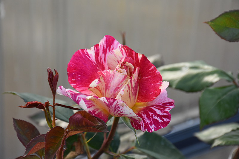 Hardiness Zone: 5a Other Names: Artista Panarosa Rose Group/Class: Painters Collection™ Brand: Delbard Roses Description: A stunning hybrid tea rose featuring large, paint splashed, red and white blooms with golden-orange centers; short and compact with excellent disease resistance; an excellent cut flower Ornamental Features Maurice Utrillo™ Rose features showy fragrant double white flowers with red overtones and gold eyes at the ends of the branches from late spring to mid fall. The flowers are excellent for cutting. It has dark green deciduous foliage. The oval compound leaves turn yellow in fall. Landscape Attributes Maurice Utrillo™ Rose is a multi-stemmed deciduous shrub with an upright spreading habit of growth. Its average texture blends into the landscape, but can be balanced by one or two finer or coarser trees or shrubs for an effective composition. This shrub will require occasional maintenance and upkeep, and is best pruned in late winter once the threat of extreme cold has passed. It is a good choice for attracting bees to your yard. It has no significant negative characteristics. Maurice Utrillo™ Rose is recommended for the following landscape applications; Planting & Growing Maurice Utrillo™ Rose will grow to be about 4 feet tall at maturity, with a spread of 3 feet. It tends to fill out right to the ground and therefore doesn't necessarily require facer plants in front. It grows at a fast rate, and under ideal conditions can be expected to live for approximately 30 years. This shrub should only be grown in full sunlight. It does best in average to evenly moist conditions, but will not tolerate standing water. It is not particular as to soil type or pH. It is highly tolerant of urban pollution and will even thrive in inner city environments. This particular variety is an interspecific hybrid.