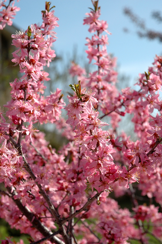 Hardiness Zone: 3a Description: This underrated multi-stemmed feature shrub is very deserving of greater use, with its cheery pink flowers in spring and blend of fall colors; very hardy, a fruitless variety, makes an excellent substitute for a flowering cherry tree, needs full sun Ornamental Features Muckle Plum is covered in stunning clusters of lightly-scented hot pink flowers along the branches in early spring, which emerge from distinctive cherry red flower buds before the leaves. It has dark green deciduous foliage. The pointy leaves turn an outstanding orange in the fall. The smooth black bark adds an interesting dimension to the landscape. Landscape Attributes Muckle Plum is a multi-stemmed deciduous shrub with an upright spreading habit of growth. Its average texture blends into the landscape, but can be balanced by one or two finer or coarser trees or shrubs for an effective composition. This is a relatively low maintenance shrub, and is best pruned in late winter once the threat of extreme cold has passed. It has no significant negative characteristics. Muckle Plum is recommended for the following landscape applications; Planting & Growing Muckle Plum will grow to be about 15 feet tall at maturity, with a spread of 10 feet. It has a low canopy with a typical clearance of 2 feet from the ground, and is suitable for planting under power lines. It grows at a medium rate, and under ideal conditions can be expected to live for approximately 30 years. This shrub should only be grown in full sunlight. It does best in average to evenly moist conditions, but will not tolerate standing water. It is not particular as to soil type or pH. It is highly tolerant of urban pollution and will even thrive in inner city environments. This particular variety is an interspecific hybrid.