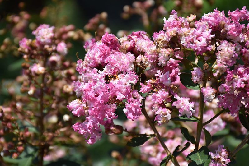 Hardiness Zone: 6b Other Names: Crape Myrtle, Crepe Myrtle Description: This attractive, densely branched miniature selection is covered in rose and white bicolor blooms in summer, followed by deep red fall foliage; a captivating focal point for the garden or border; good disease resistance Ornamental Features Bicolor Crapemyrtle is clothed in stunning panicles of rose frilly flowers with white overtones at the ends of the branches from early summer to early fall. It has attractive dark green deciduous foliage which emerges brick red in spring. The oval leaves are highly ornamental and turn dark red in fall. Landscape Attributes Bicolor Crapemyrtle is a dense multi-stemmed deciduous shrub with an upright spreading habit of growth. Its relatively fine texture sets it apart from other landscape plants with less refined foliage. This is a relatively low maintenance shrub, and is best pruned in late winter once the threat of extreme cold has passed. It has no significant negative characteristics. Bicolor Crapemyrtle is recommended for the following landscape applications; Planting & Growing Bicolor Crapemyrtle will grow to be about 4 feet tall at maturity, with a spread of 4 feet. It has a low canopy. It grows at a fast rate, and under ideal conditions can be expected to live for 50 years or more. This shrub does best in full sun to partial shade. It prefers to grow in average to moist conditions, and shouldn't be allowed to dry out. It is very fussy about its soil conditions and must have rich, acidic soils to ensure success, and is subject to chlorosis (yellowing) of the foliage in alkaline soils. It is highly tolerant of urban pollution and will even thrive in inner city environments. This particular variety is an interspecific hybrid.