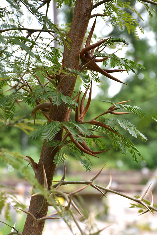 Hardiness Zone: 9a Other Names: Bullhorn Wattle, Cachito, form. Acacia cornigera Description: This unique evergreen tree features gracefully arching branches and tiny, pinnate foliage; unusual, hollowed out thorns are home to a symbiotic ant species in its natural range; prefers fertile, well drained, sandy soils and full sun; drought tolerant Ornamental Features Bullhorn Acacia is primarily valued in the landscape for its ornamental upright and spreading habit of growth. It features subtle clusters of yellow ball-shaped flowers with gold overtones along the branches from late spring to early summer. It has attractive green evergreen foliage. The tiny narrow pinnately compound leaves are highly ornamental and remain green throughout the winter. Landscape Attributes Bullhorn Acacia is an open multi-stemmed evergreen tree with an upright spreading habit of growth. Its relatively fine texture sets it apart from other landscape plants with less refined foliage. This is a relatively low maintenance tree, and should only be pruned after flowering to avoid removing any of the current season's flowers. Deer don't particularly care for this plant and will usually leave it alone in favor of tastier treats. Gardeners should be aware of the following characteristic(s) that may warrant special consideration; Bullhorn Acacia is recommended for the following landscape applications; Planting & Growing Bullhorn Acacia will grow to be about 30 feet tall at maturity, with a spread of 20 feet. It has a low canopy with a typical clearance of 2 feet from the ground, and should not be planted underneath power lines. It grows at a medium rate, and under ideal conditions can be expected to live for approximately 30 years. This tree does best in full sun to partial shade. It is quite adaptable, prefering to grow in average to wet conditions, and will even tolerate some standing water. It is not particular as to soil type or pH. It is somewhat tolerant of urban pollution. This species is not originally from North America..