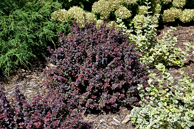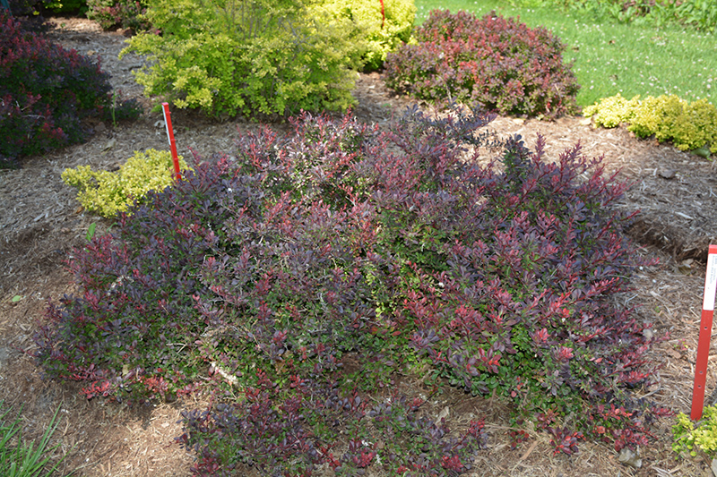 Hardiness Zone: 6a Brand: Proven Winners Description: An outstanding variety featuring glossy, deep purple-black foliage that is semi-evergreen; golden spring blooms produce seedless, sterile berries; very showy, great as a color contrast in the landscape; plant on slopes, in beds, or as a border Ornamental Features Sunjoy Todo® Japanese Barberry is primarily valued in the garden for its ornamental globe-shaped form. It has clusters of gold flowers hanging below the branches in late spring, which are interesting on close inspection. It has attractive deep purple foliage with hints of black which emerges red in spring. The small glossy oval leaves are highly ornamental and turn outstanding shades of scarlet and burgundy in the fall. Landscape Attributes Sunjoy Todo® Japanese Barberry is a dense multi-stemmed deciduous shrub with a more or less rounded form. Its relatively fine texture sets it apart from other landscape plants with less refined foliage. This shrub will require occasional maintenance and upkeep, and can be pruned at anytime. Deer don't particularly care for this plant and will usually leave it alone in favor of tastier treats. Gardeners should be aware of the following characteristic(s) that may warrant special consideration; Sunjoy Todo® Japanese Barberry is recommended for the following landscape applications; Planting & Growing Sunjoy Todo® Japanese Barberry will grow to be about 24 inches tall at maturity, with a spread of 24 inches. It tends to fill out right to the ground and therefore doesn't necessarily require facer plants in front. It grows at a medium rate, and under ideal conditions can be expected to live for approximately 20 years. This shrub does best in full sun to partial shade. It is very adaptable to both dry and moist growing conditions, but will not tolerate any standing water. It is not particular as to soil type or pH, and is able to handle environmental salt. It is highly tolerant of urban pollution and will even thrive in inner city environments. This particular variety is an interspecific hybrid.