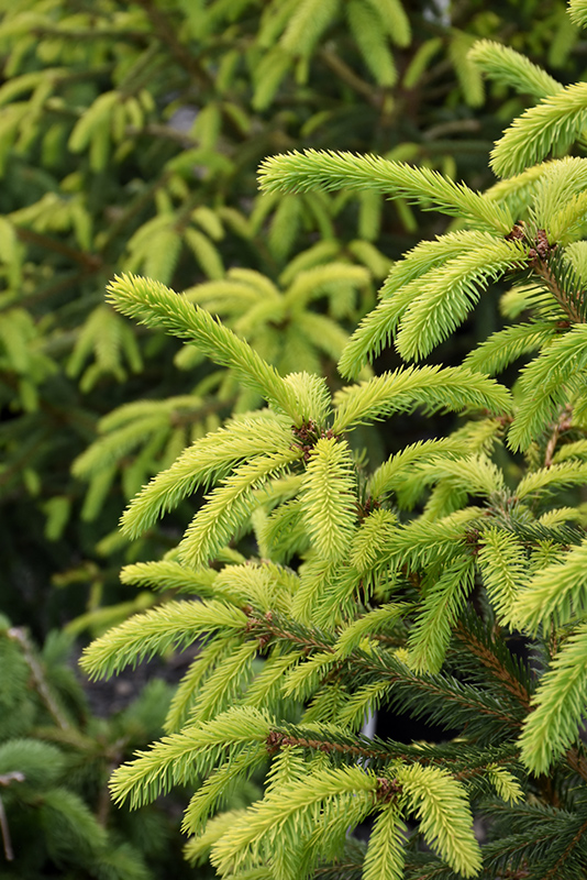 Hardiness Zone: 3b Other Names: Norwegian Spruce Brand: Iseli Nursery Description: An attractive form of this popular spruce featuring bright lemon yellow emerging foliage; in summer, the undersides and shaded interior foliage turns lime green; a fine color accent tree that creates a striking contrast in the landscape Ornamental Features The Limey Norway Spruce is primarily valued in the landscape for its distinctively pyramidal habit of growth. It has attractive yellow foliage with lime green undersides which emerges lemon yellow in spring. The small needles are highly ornamental and remain yellow throughout the winter. Landscape Attributes The Limey Norway Spruce is a dense evergreen tree with a strong central leader and a distinctive and refined pyramidal form. Its average texture blends into the landscape, but can be balanced by one or two finer or coarser trees or shrubs for an effective composition. This is a relatively low maintenance tree. When pruning is necessary, it is recommended to only trim back the new growth of the current season, other than to remove any dieback. Deer don't particularly care for this plant and will usually leave it alone in favor of tastier treats. It has no significant negative characteristics. The Limey Norway Spruce is recommended for the following landscape applications; Planting & Growing The Limey Norway Spruce will grow to be about 20 feet tall at maturity, with a spread of 12 feet. It has a low canopy, and is suitable for planting under power lines. It grows at a medium rate, and under ideal conditions can be expected to live for 50 years or more. This tree should only be grown in full sunlight. It does best in average to evenly moist conditions, but will not tolerate standing water. It is not particular as to soil type or pH, and is able to handle environmental salt. It is highly tolerant of urban pollution and will even thrive in inner city environments. This is a selected variety of a species not originally from North America.
