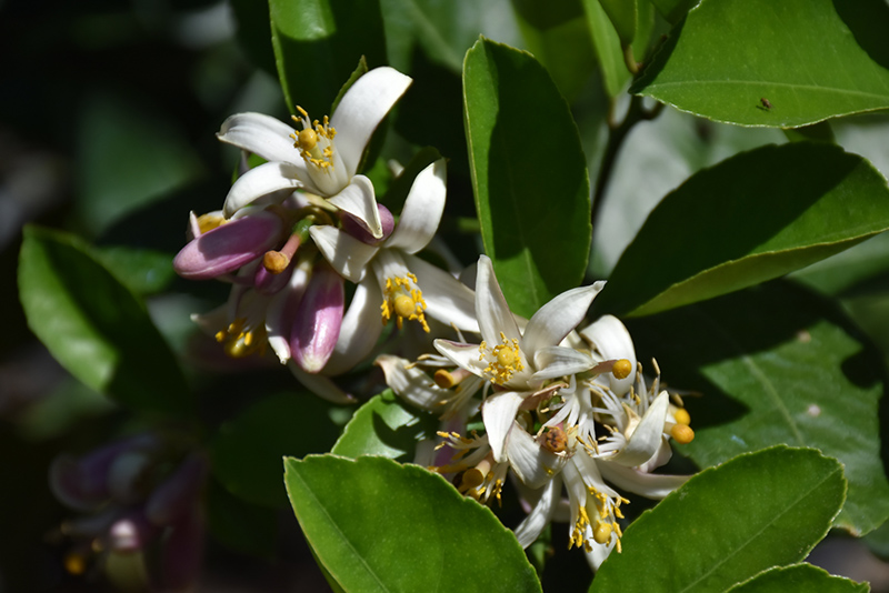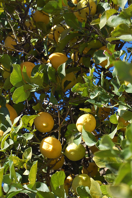Hardiness Zone: 9a Description: Attractive foliage on this large shrub or small tree are reddish when young, becoming dark green with lighter green undersides; seasonal fragrant flowers produce yellow fruit that have great flavor; protect from frost; showy on the landscape Edible Qualities Lemon is a small tree that is commonly grown for its edible qualities. It produces yellow fruit which are typically harvested when mature. The fruits have a tangy taste and a juicy texture. The fruit are most often used in the following ways: Features & Attributes Lemon features showy clusters of fragrant white star-shaped flowers with buttery yellow eyes at the ends of the branches from early to mid spring, which emerge from distinctive lilac purple flower buds. It has attractive dark green foliage with light green undersides which emerges brick red in spring. The glossy oval leaves are highly ornamental and remain dark green throughout the winter. It features an abundance of magnificent yellow berries from late fall to late winter. The fruit can be messy if allowed to drop on the lawn or walkways, and may require occasional clean-up. This is a multi-stemmed evergreen tree with an upright spreading habit of growth. Its average texture blends into the landscape, but can be balanced by one or two finer or coarser trees or shrubs for an effective composition. This is a relatively low maintenance plant, and is best pruned in late winter once the threat of extreme cold has passed. It is a good choice for attracting birds, bees and butterflies to your yard. Gardeners should be aware of the following characteristic(s) that may warrant special consideration; Aside from its primary use as an edible, Lemon is sutiable for the following landscape applications; Planting & Growing Lemon will grow to be about 20 feet tall at maturity, with a spread of 15 feet. It has a low canopy with a typical clearance of 2 feet from the ground, and is suitable for planting under power lines. It grows at a slow rate, and under ideal conditions can be expected to live for 50 years or more. This is a self-pollinating variety, so it doesn't require a second plant nearby to set fruit. This tree is typically grown in a designated area of the yard because of its mature size and spread. It does best in full sun to partial shade. It prefers to grow in average to moist conditions, and shouldn't be allowed to dry out. It is not particular as to soil type or pH. It is somewhat tolerant of urban pollution. This species is not originally from North America. Lemon is a good choice for the edible garden, but it is also well-suited for use in outdoor pots and containers. Its large size and upright habit of growth lend it for use as a solitary accent, or in a composition surrounded by smaller plants around the base and those that spill over the edges. It is even sizeable enough that it can be grown alone in a suitable container. Note that when grown in a container, it may not perform exactly as indicated on the tag - this is to be expected. Also note that when growing plants in outdoor containers and baskets, they may require more frequent waterings than they would in the yard or garden.