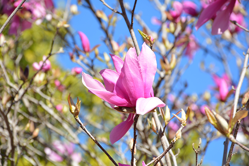 Hardiness Zone: 4b Group/Class: Little Girl Series Description: A hybrid magnolia selected for its spectacular purple cup-shaped flowers with white insides in spring before the leaves and improved hardiness; a medium sized shrub, good as a specimen or accent for spring bloom Ornamental Features Betty Magnolia is bathed in stunning fragrant fuchsia cup-shaped flowers with pink overtones held atop the branches in early spring before the leaves. It has dark green deciduous foliage which emerges coppery-bronze in spring. The large pointy leaves turn coppery-bronze in fall. Landscape Attributes Betty Magnolia is a multi-stemmed deciduous shrub with a more or less rounded form. Its relatively coarse texture can be used to stand it apart from other landscape plants with finer foliage. This is a relatively low maintenance shrub, and should only be pruned after flowering to avoid removing any of the current season's flowers. It has no significant negative characteristics. Betty Magnolia is recommended for the following landscape applications; Planting & Growing Betty Magnolia will grow to be about 15 feet tall at maturity, with a spread of 15 feet. It has a low canopy with a typical clearance of 2 feet from the ground, and is suitable for planting under power lines. It grows at a medium rate, and under ideal conditions can be expected to live for 50 years or more. This shrub does best in full sun to partial shade. It requires an evenly moist well-drained soil for optimal growth, but will die in standing water. It is not particular as to soil type, but has a definite preference for acidic soils. It is quite intolerant of urban pollution, therefore inner city or urban streetside plantings are best avoided. Consider applying a thick mulch around the root zone in winter to protect it in exposed locations or colder microclimates. This particular variety is an interspecific hybrid.