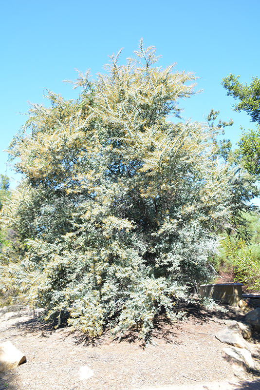 Hardiness Zone: 9a Other Names: Fernleaf Acacia, Bailey's Acacia, Golden Mimosa Description: A large, graceful shrub or small tree with a wide spreading canopy; feathery, evergreen blue-gray foliage is delicate and almost fern like; fragrant pea-like golden-yellow flowers appear in late winter to spring; drought tolerant once established Ornamental Features Cootamundra Wattle features showy racemes of fragrant yellow ball-shaped flowers along the branches from late winter to early spring. It has attractive powder blue foliage with hints of silver. The tiny narrow bipinnately compound leaves are highly ornamental and remain powder blue throughout the winter. The fruits are showy brown pods displayed from mid summer to mid fall. Landscape Attributes Cootamundra Wattle is a multi-stemmed evergreen tree with a shapely form and gracefully arching branches. Its relatively fine texture sets it apart from other landscape plants with less refined foliage. This is a relatively low maintenance tree, and should only be pruned after flowering to avoid removing any of the current season's flowers. It is a good choice for attracting birds, bees and butterflies to your yard, but is not particularly attractive to deer who tend to leave it alone in favor of tastier treats. Gardeners should be aware of the following characteristic(s) that may warrant special consideration; Cootamundra Wattle is recommended for the following landscape applications; Planting & Growing Cootamundra Wattle will grow to be about 25 feet tall at maturity, with a spread of 25 feet. It has a low canopy with a typical clearance of 1 foot from the ground, and is suitable for planting under power lines. It grows at a fast rate, and under ideal conditions can be expected to live for approximately 30 years. This tree does best in full sun to partial shade. It does best in average to evenly moist conditions, but will not tolerate standing water. It is not particular as to soil pH, but grows best in sandy soils. It is somewhat tolerant of urban pollution. This species is not originally from North America..