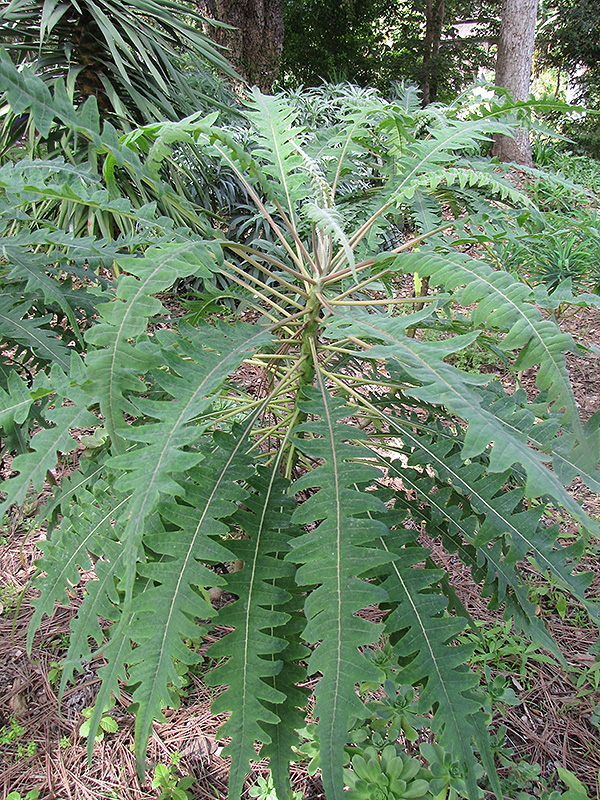 Hardiness Zone: 9a Other Names: Giant Sow Thistle, Tree Dandelion Description: A tall, upright shrub with unusual, deeply cleft pinnate leaves near the branch tips; thick stems bear large clusters of yellow dandelion-like flowers that rise up from spring to summer; drought tolerant; an attractive garden accent, stunning in bloom Ornamental Features Tree Sonchus features showy clusters of fragrant lemon yellow pincushion flowers rising above the foliage from early spring to early summer. It has attractive green deciduous foliage. The large ferny pinnately compound leaves are highly ornamental but do not develop any appreciable fall color. Landscape Attributes Tree Sonchus is a multi-stemmed deciduous shrub with an upright spreading habit of growth. Its average texture blends into the landscape, but can be balanced by one or two finer or coarser trees or shrubs for an effective composition. This shrub will require occasional maintenance and upkeep. Trim off the flower heads after they fade and die to encourage more blooms late into the season. It is a good choice for attracting bees and butterflies to your yard. It has no significant negative characteristics. Tree Sonchus is recommended for the following landscape applications; Planting & Growing Tree Sonchus will grow to be about 8 feet tall at maturity, with a spread of 6 feet. It has a low canopy with a typical clearance of 2 feet from the ground, and is suitable for planting under power lines. It grows at a medium rate, and under ideal conditions can be expected to live for approximately 10 years. As this plant tends to go dormant in summer, it is best interplanted with late-season bloomers to hide the dying foliage. This shrub does best in full sun to partial shade. It is very adaptable to both dry and moist growing conditions, but will not tolerate any standing water. It is considered to be drought-tolerant, and thus makes an ideal choice for xeriscaping or the moisture-conserving landscape. It is not particular as to soil type or pH. It is somewhat tolerant of urban pollution. Consider applying a thick mulch around the root zone over the growing season to conserve soil moisture. This species is not originally from North America.. Tree Sonchus makes a fine choice for the outdoor landscape, but it is also well-suited for use in outdoor pots and containers. With its upright habit of growth, it is best suited for use as a 'thriller' in the 'spiller-thriller-filler' container combination; plant it near the center of the pot, surrounded by smaller plants and those that spill over the edges. It is even sizeable enough that it can be grown alone in a suitable container. Note that when grown in a container, it may not perform exactly as indicated on the tag - this is to be expected. Also note that when growing plants in outdoor containers and baskets, they may require more frequent waterings than they would in the yard or garden.